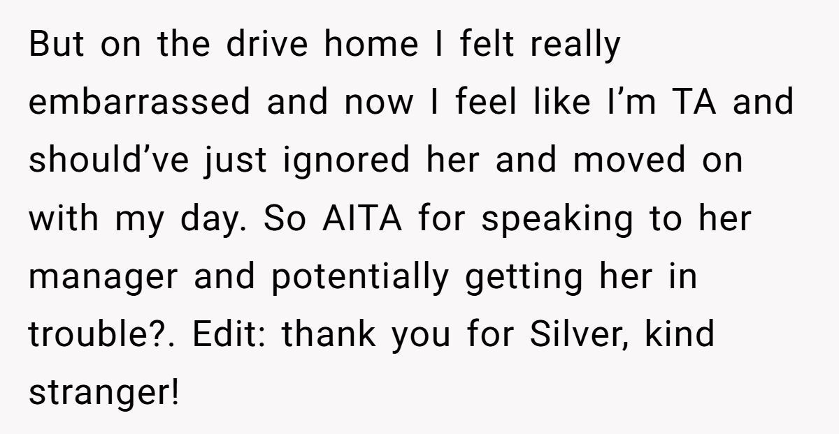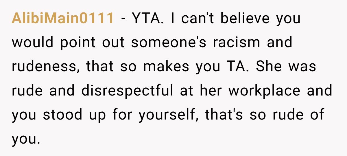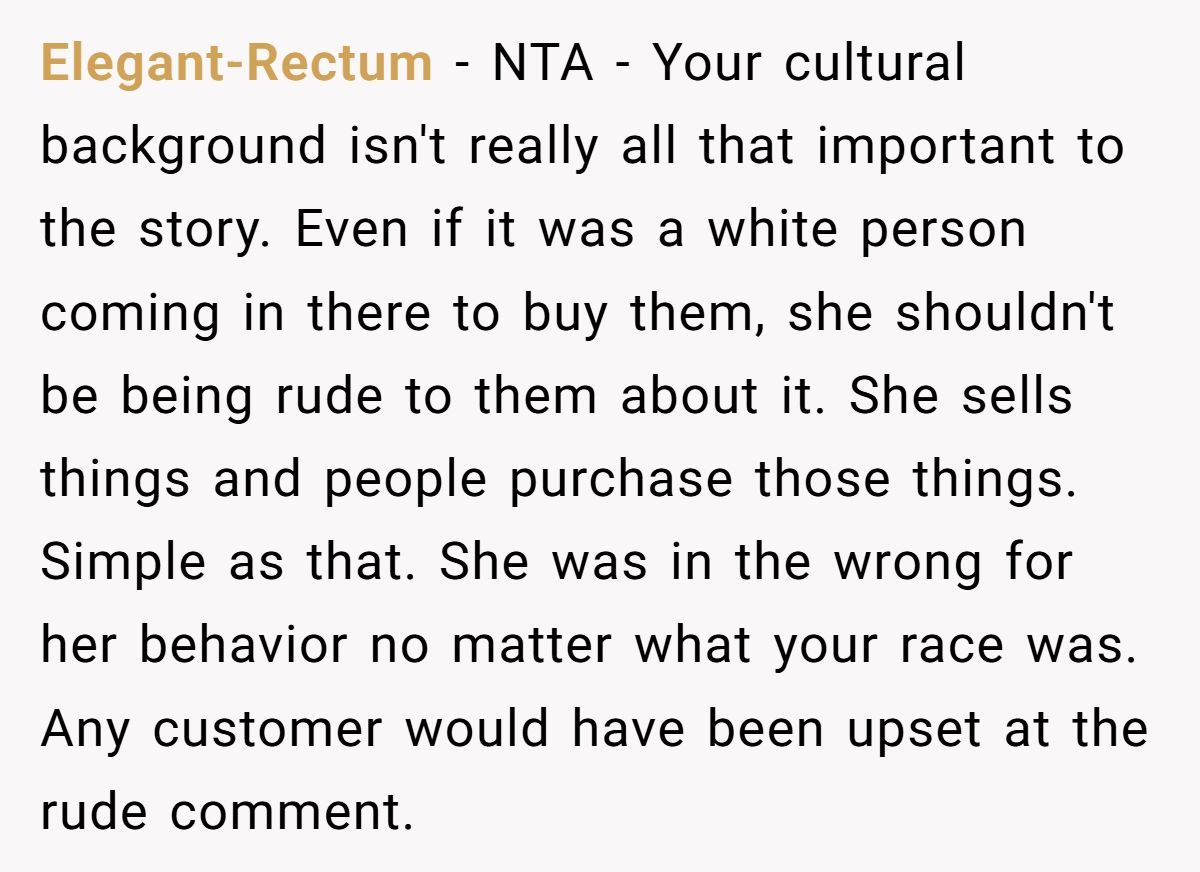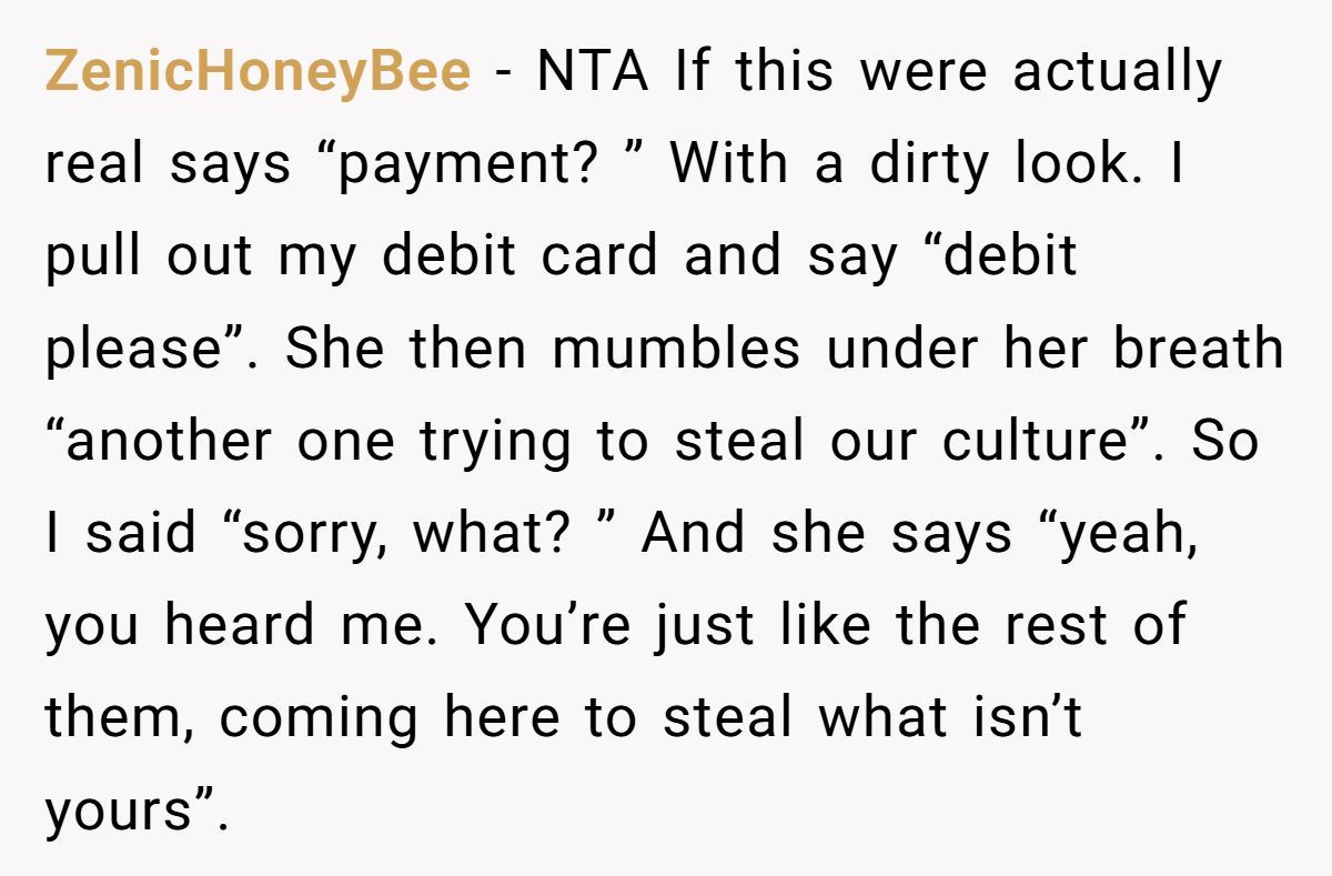 Could the situation have been brushed off? Sure. But would it have served anyone? Unlikely. This wasn’t about vengeance—it was about boundary setting, cultural affirmation, and dignity. The manager might handle it discreetly, or not at all. But that small stand may still ripple in ways the Redditor doesn’t see.