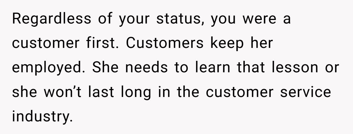 Commenters stressed the cashier’s rudeness was unacceptable, regardless of the woman’s identity, as it harmed the store’s purpose