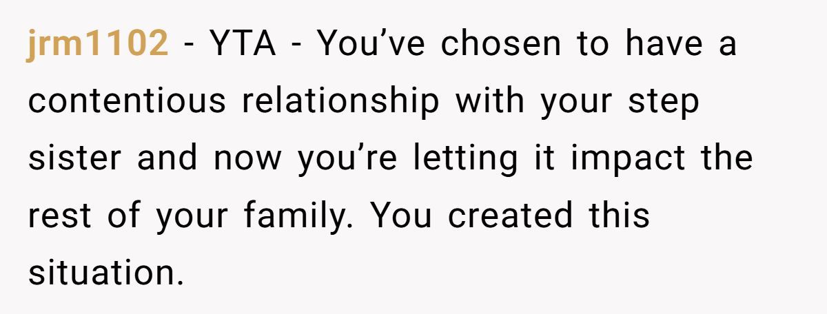 Some highlighted the Redditor’s resentment toward her step-sister, linking it to her party decision