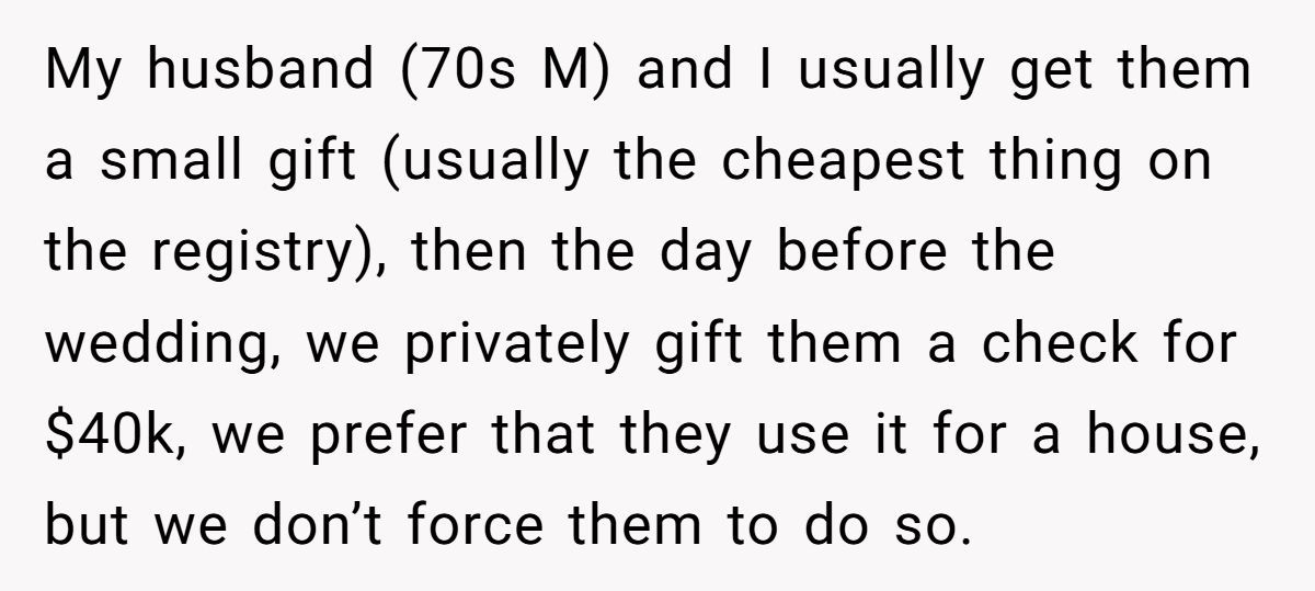 One grandmother shared a story of family drama after her granddaughter’s entitled outburst over a wedding gift led them to withhold a $40,000 cash gift given to other grandchildren