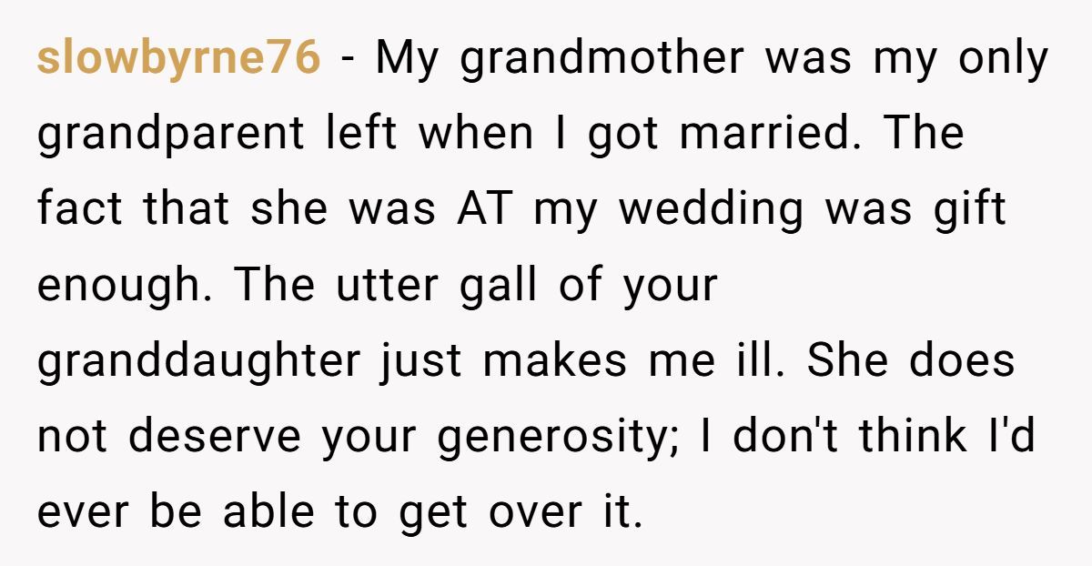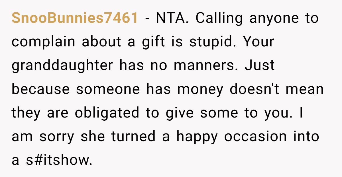 Some condemned the granddaughter’s entitled behavior, highlighting her lack of gratitude