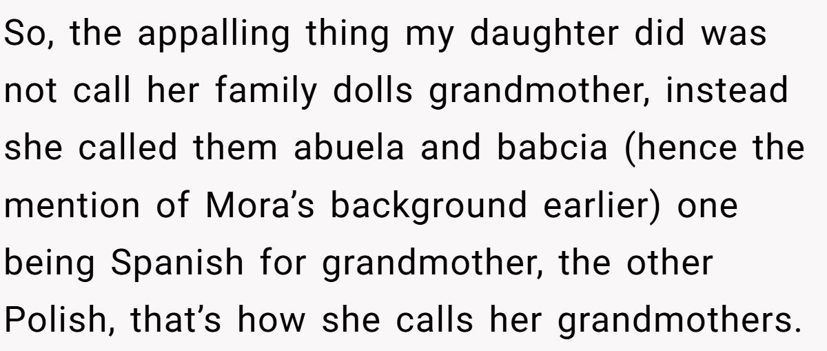 That’s the reality one Redditor faced when her 10-year-old daughter, Mora, got called out for using the words “abuela” and “babcia” during a Barbie playdate. In that moment, what should’ve been a sweet nod to the family’s Polish-Chilean roots turned into a suburban battleground.