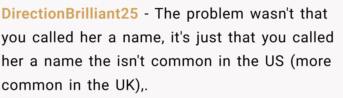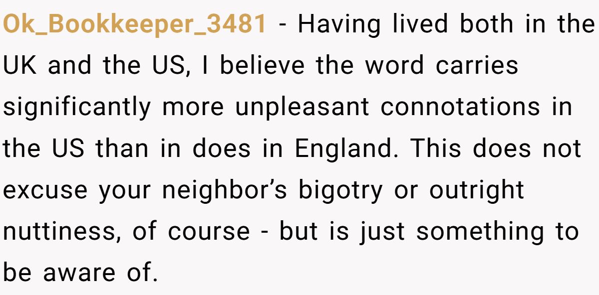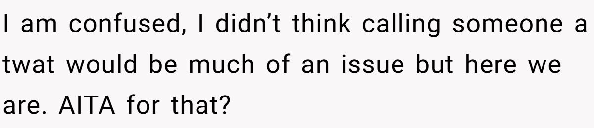 Some people in the comments pointed out that in the U.S., “twat” sounds especially crass. But where the Redditor grew up in London, it’s practically mild compared to what she could have said.