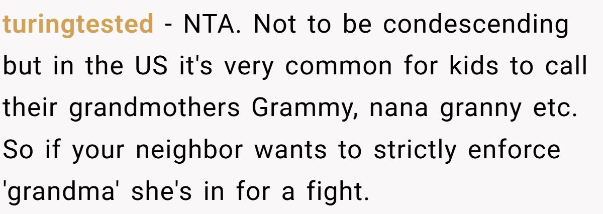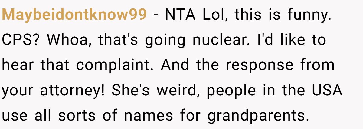 Many agreed the neighbor’s reaction was absurd, pointing out that using different words for grandparents is normal everywhere, and threatening CPS was just over-the-top drama.