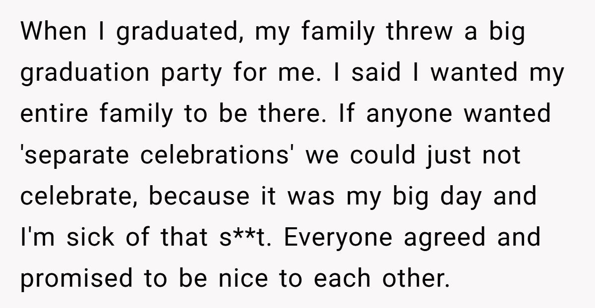 This graduation party was supposed to mark a new beginning, but for one Redditor, it also became a reminder of how fragile family harmony can be.