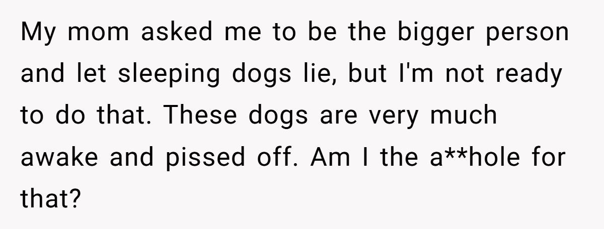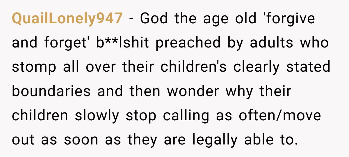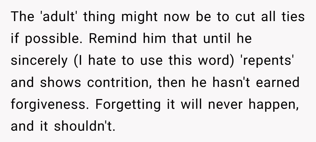 The Redditor’s lingering frustration isn’t surprising. While calling out the stepfather might seem petty, it also acts as a defense mechanism. When someone ruins a major life event, forgiveness doesn’t always come easily. Still, experts advise that holding onto resentment can become emotionally draining. Setting clear boundaries and choosing peace—without pretending nothing happened—might offer a better path forward.