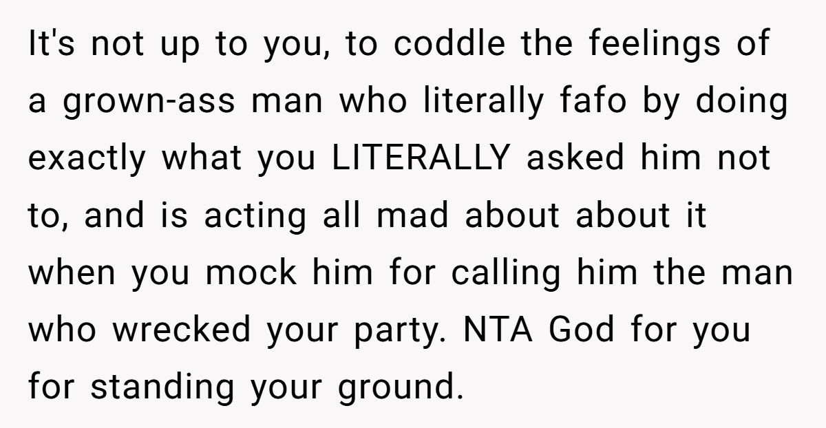 Many redditors agreed the poster wasn’t wrong. They said the stepfather caused the drama, ignored warnings, and ruined the party