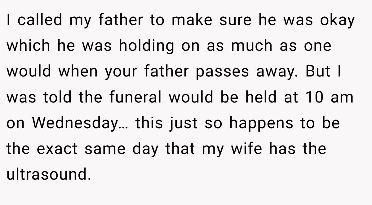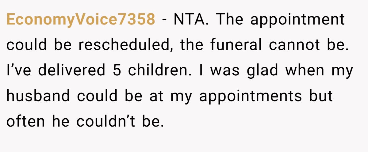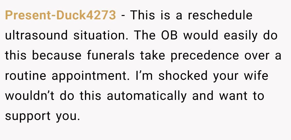 This drama reflects broader challenges of balancing grief and new parenthood. The Redditor could FaceTime during the ultrasound, while the wife might explore private clinics for flexibility. Open communication could turn this clash into a team effort. What’s your take—should he skip the funeral or she reschedule?