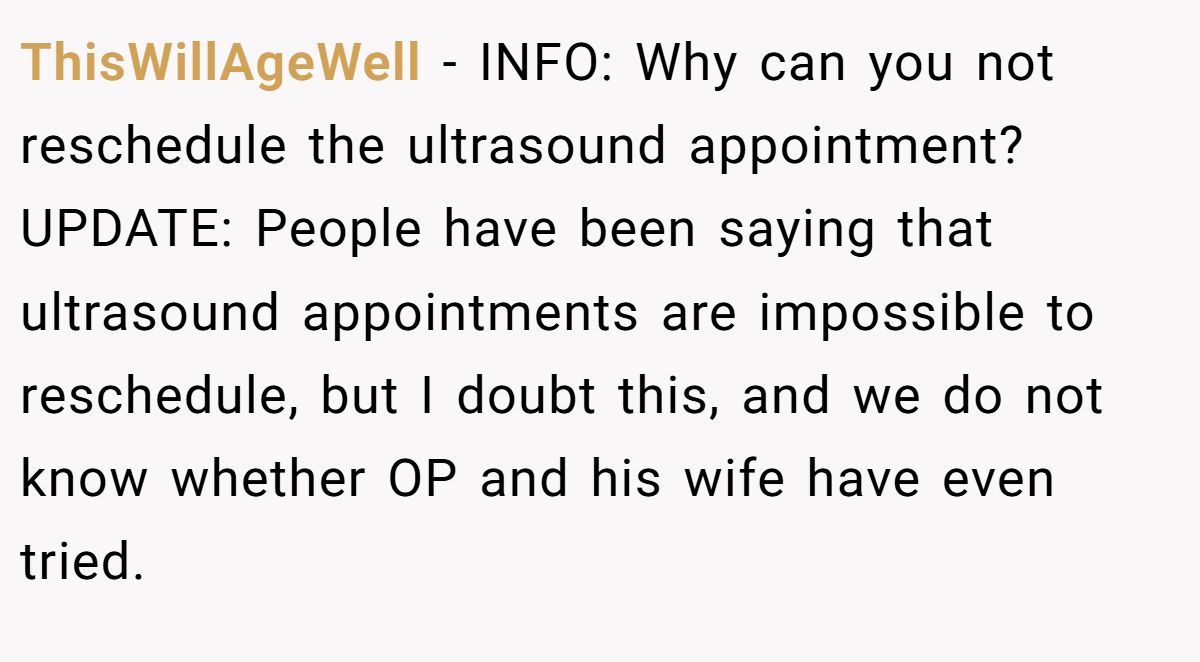 Do you think he made the right call, or should he have prioritized the scan to be “present” for both baby and wife? How would you have handled this family scheduling fiasco? Spill your take in the comments!