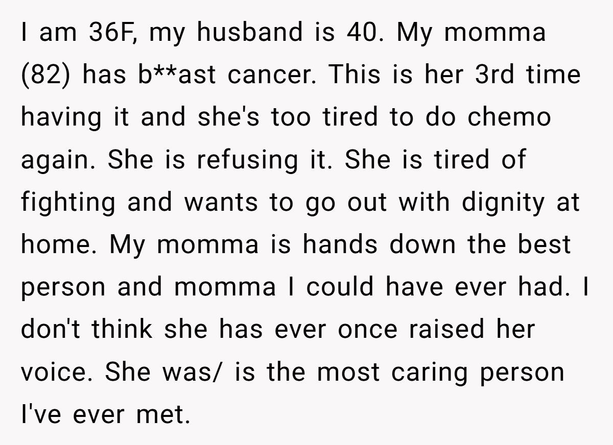 In the face of unimaginable heartbreak, this woman chose to be a daughter first—and a wife second. Reddit didn’t just support her—they practically packed her bags. When a loved one is dying, support should be unconditional. But what happens when the person closest to you doesn’t step up?