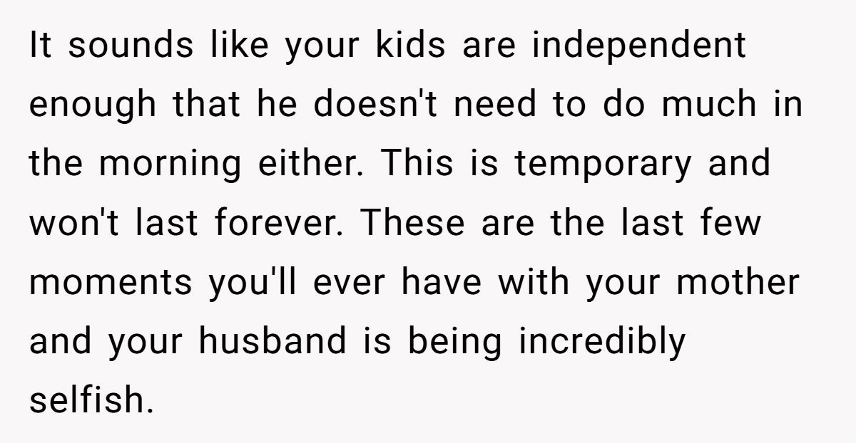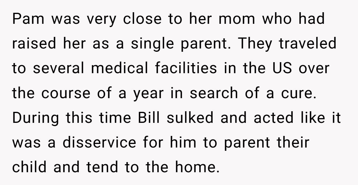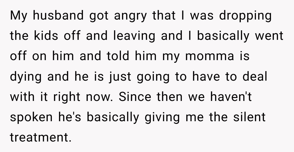 One woman shared on Reddit how her husband’s complaints about parenting their kids during her mother’s cancer battle led to a heated argument and silence