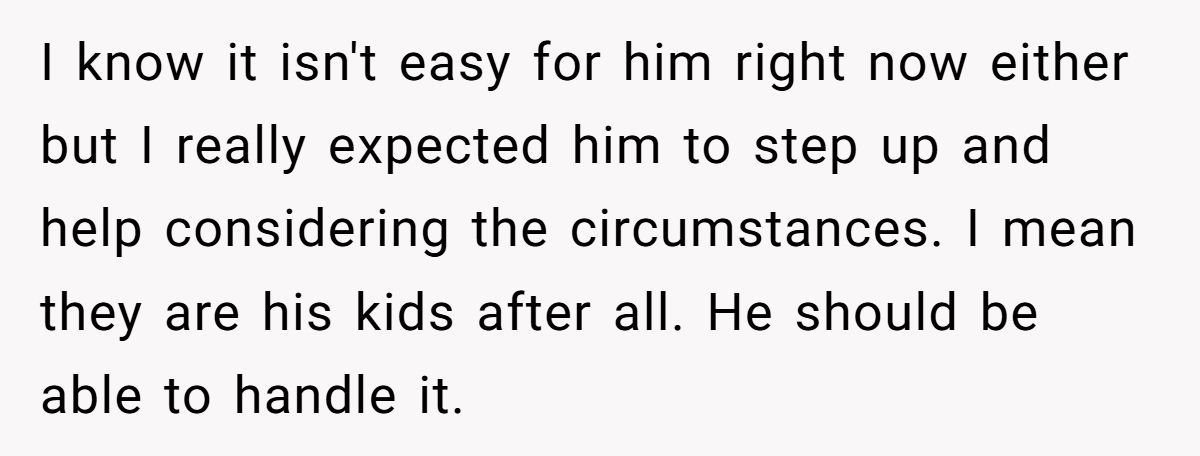 While this woman was helping care for her dying mom, her husband grew frustrated that he had to help with the kids… which, you know, are his kids too. She prepped dinner, arranged rides, kept the family machine humming—but that still wasn’t enough. When emotions snapped, she told her husband to deal with it. Alone. Want the full scoop? Scroll down and step into a story that had Reddit screaming “Not the A-hole.”