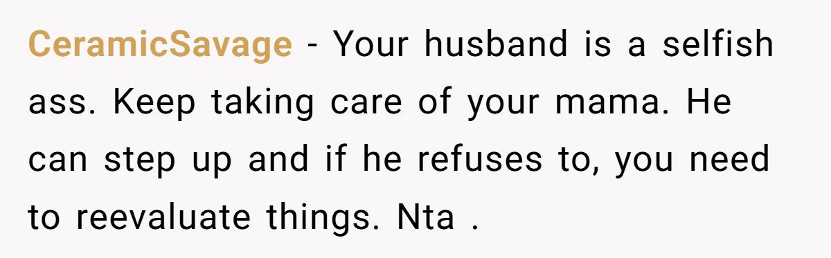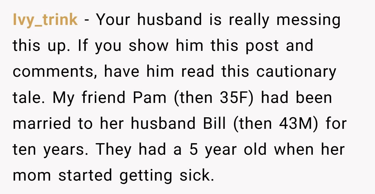 One user shared a story of a friend divorcing her husband for similar neglect during her mom’s illness, warning of lasting resentment