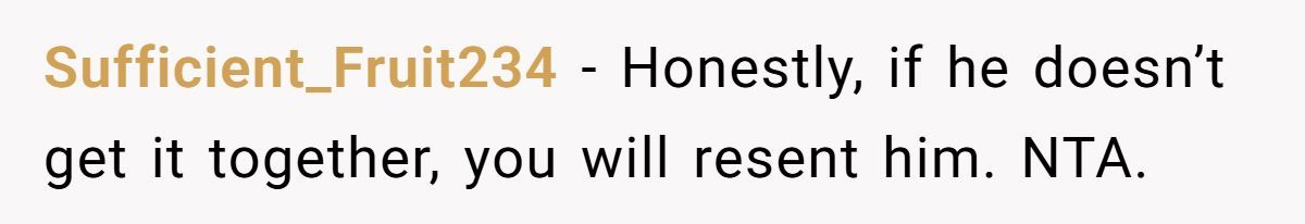 Commenters warned that his behavior could lead to her resenting him, predicting trouble if he doesn’t support her in future crises