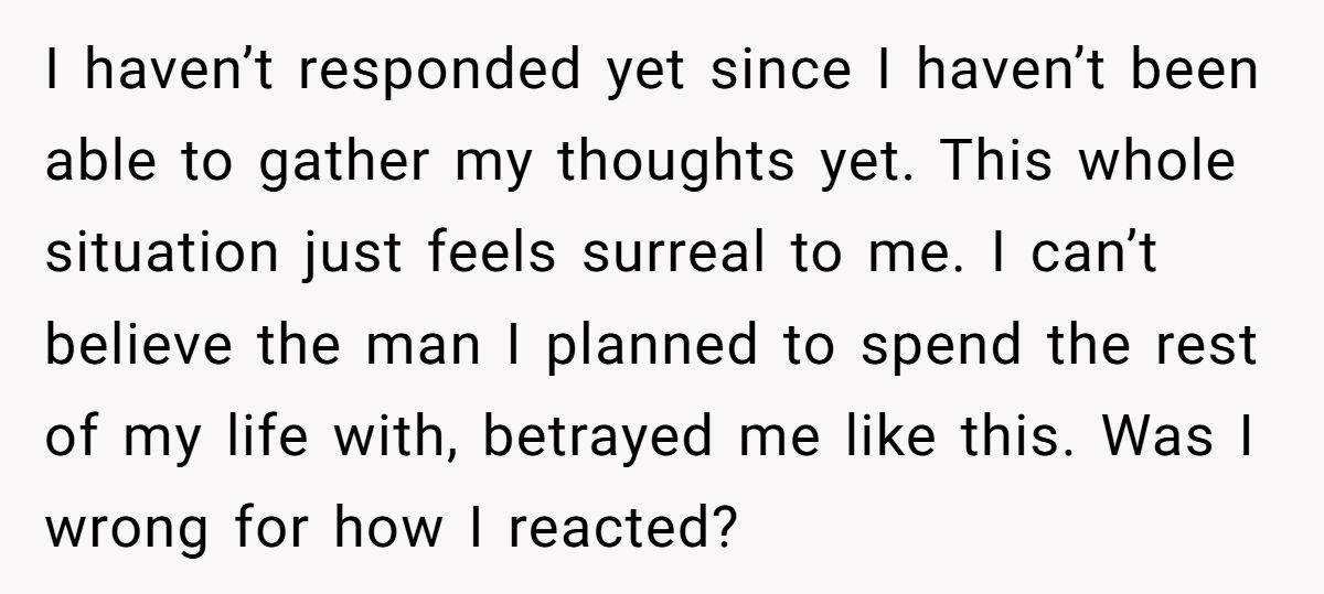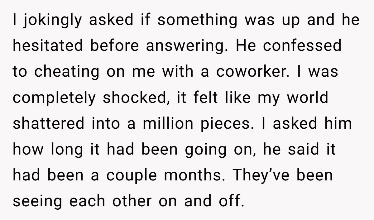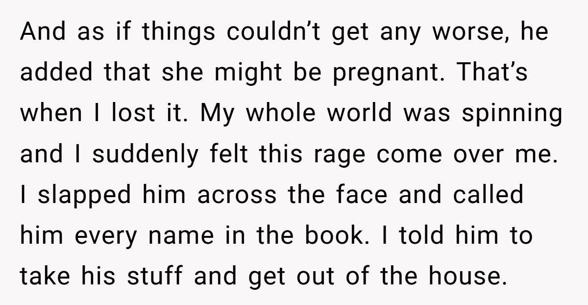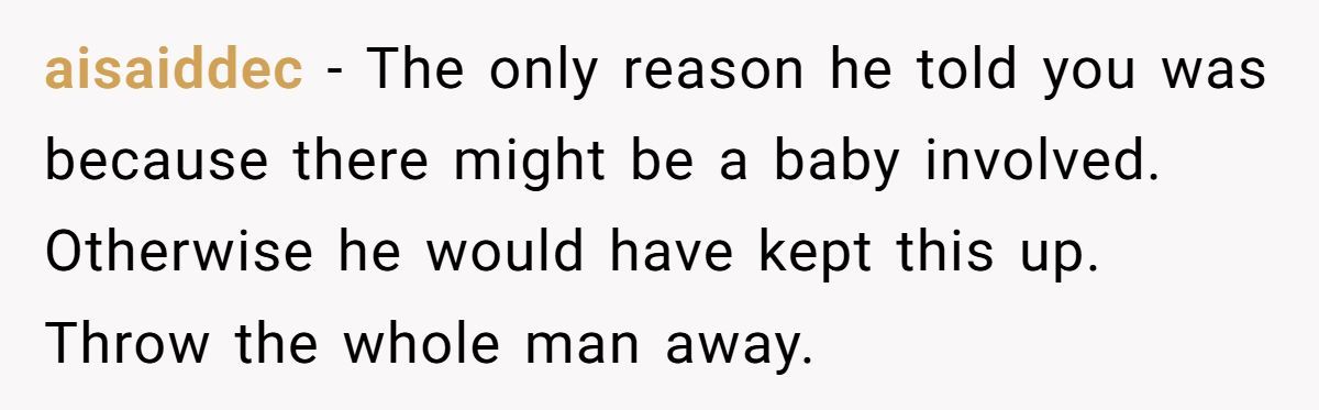 Cheating is a profound betrayal, with 40% of marriages affected by infidelity, per a 2023 Journal of Marriage and Family study, often leading to emotional trauma. The Redditor’s shock and rage are understandable—her world “shattered” in a moment, compounded by the potential pregnancy.