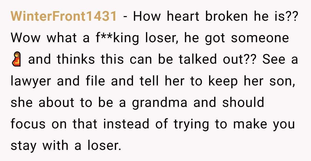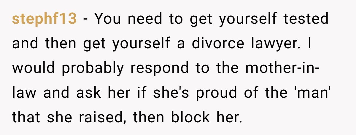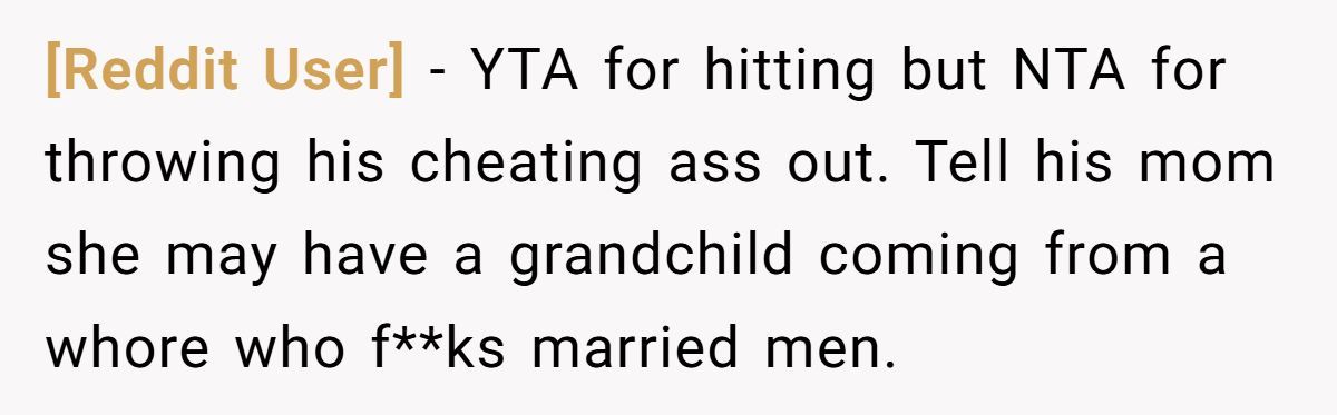 These users claimed the husband’s betrayal justified her reaction, advising her to pursue divorce and ignore his mother