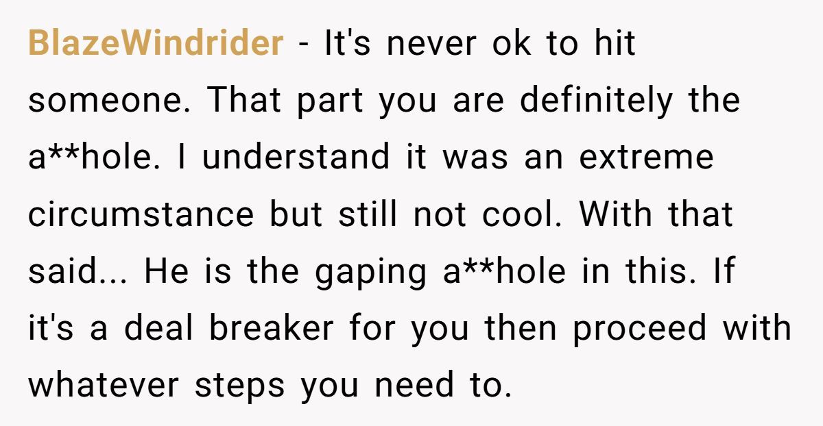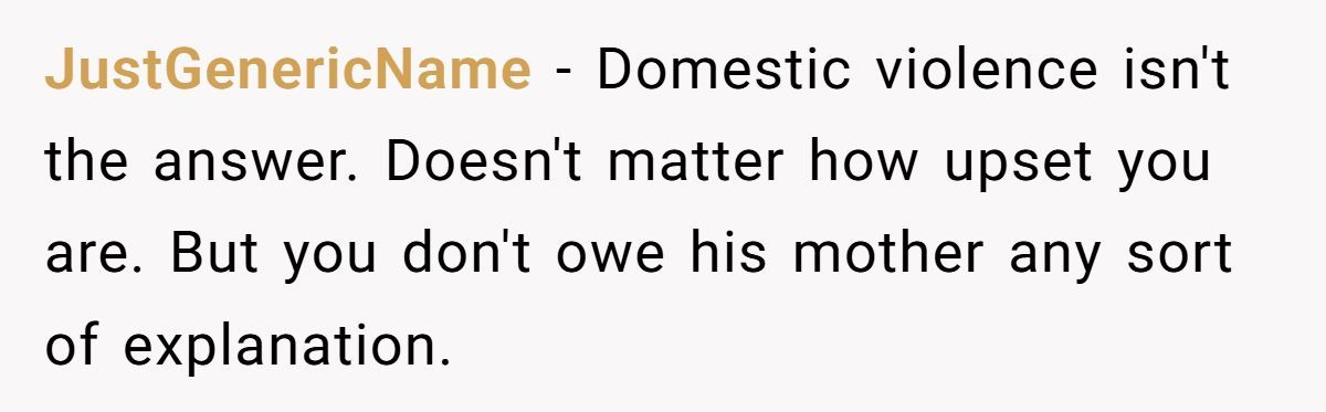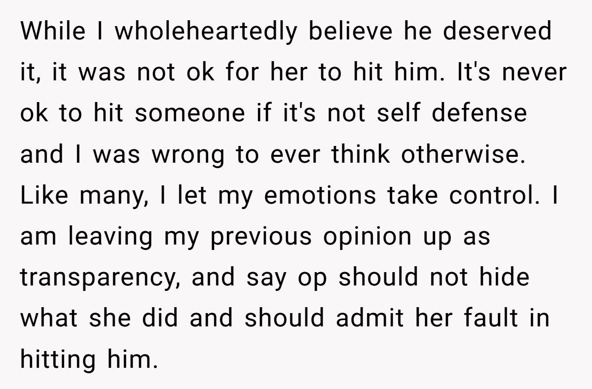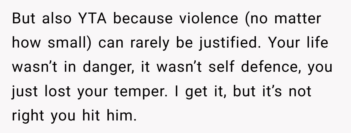 Some claimed the Redditor’s emotions were valid but violence was wrong, advising her to seek legal and emotional support