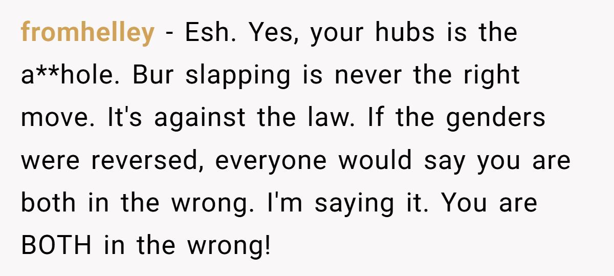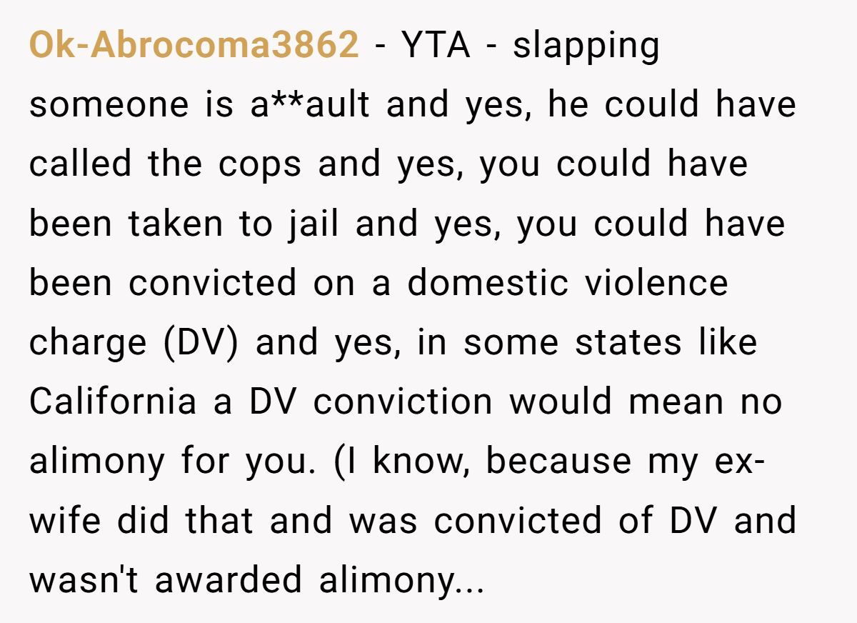 However, some claimed the slap was domestic violence, advising the Redditor to face potential legal consequences