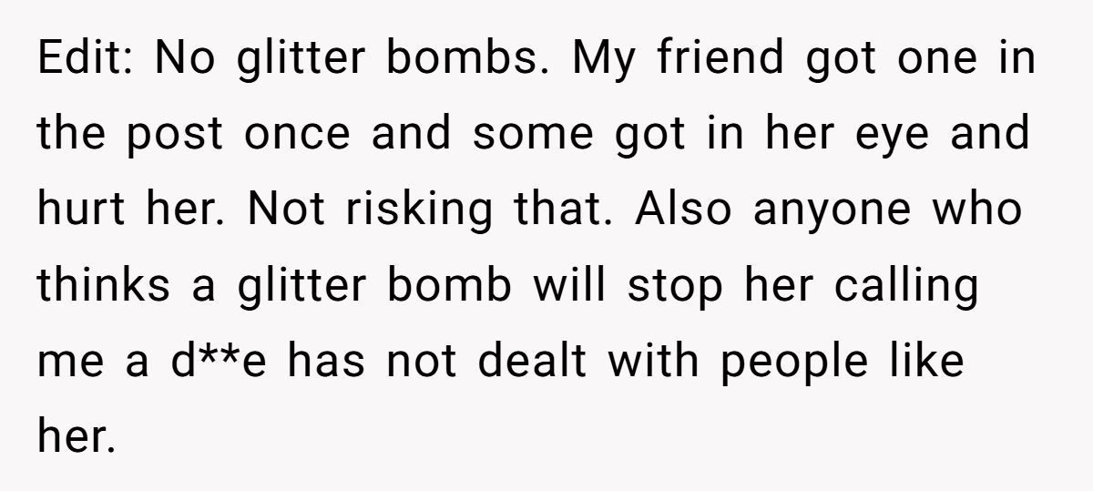Some claimed petty responses could work, advising less risky options like glitter cards