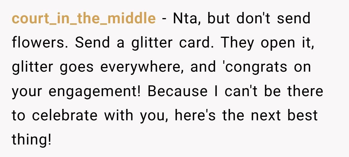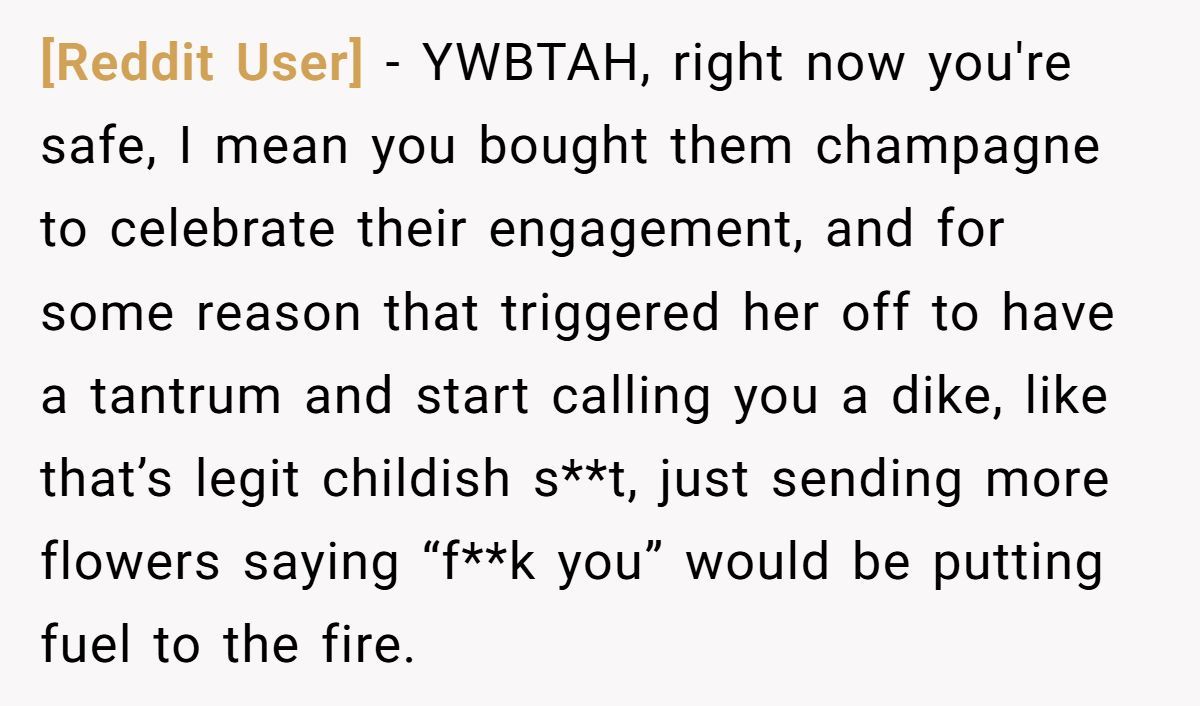 This Redditor’s plan to send a “f**k you” floral bouquet to her stepmum, who called her a slur over an innocent champagne gift, teeters on petty revenge after repeated disrespect. Reddit backs her innocence in the gift but warns against escalating with flowers, urging direct confrontation instead.