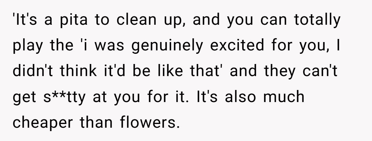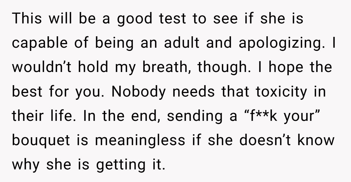 Dr. Alexandra Solomon, a licensed clinical psychologist and professor at Northwestern University, writes in Psychology Today, “When people feel betrayed by their families of origin, setting boundaries is an act of self-preservation, not revenge.” In this case, the bouquet isn’t about petty retaliation—it’s a symbolic reclaiming of respect.