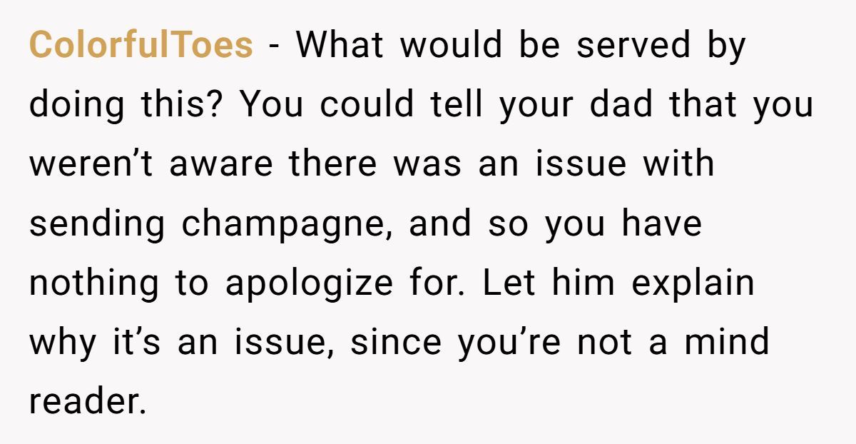 This one claimed the champagne was a reasonable mistake, advising the Redditor to stand firm