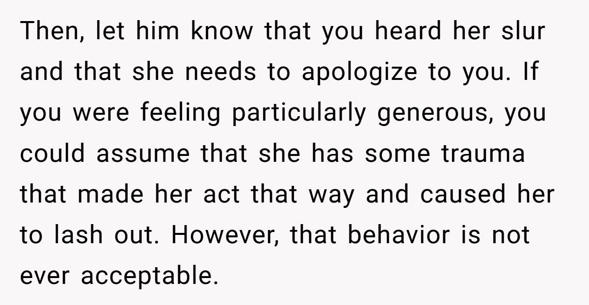 These commenters claimed the stepmum’s slur was unacceptable, advising the Redditor to address it directly