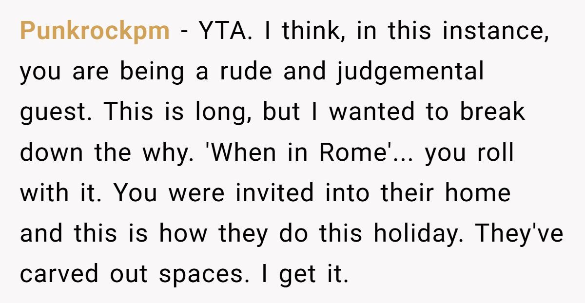 What started as a holiday gathering ended in culture clash and confusion. The Redditor wasn’t mad about who cooked what—she was hurt by how quickly her discomfort was dismissed. This Thanksgiving didn’t just serve turkey, it carved out a wedge between her and her boyfriend’s values. Was she overreacting, or was she right to question a “tradition” that felt more like a test? Could you have gone with the flow—or would you have stirred the pot too?