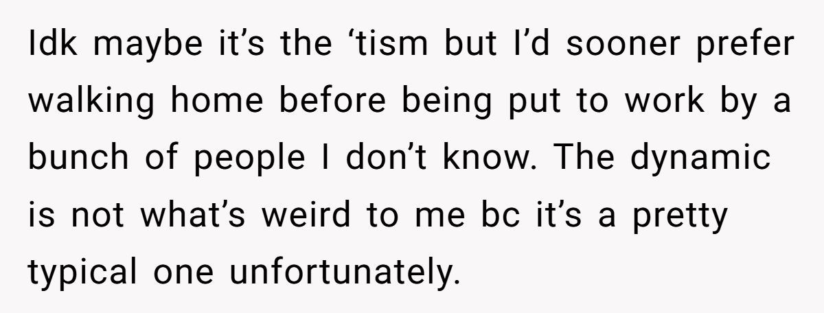 When she tried to find her place, her boyfriend nudged her toward the kitchen, calling it a “family tradition.” But instead of warm bonding, what she saw was a slice of the 1950s served cold. Her refusal to play along sparked a quiet rebellion—and a not-so-quiet internet debate. Want the juicy details? Dive into the full story and what Reddit had to say below!