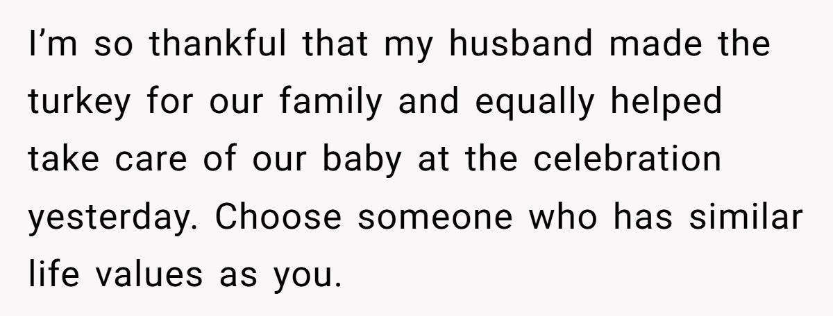 This moment isn’t just about one holiday. It’s about what this pattern says for the future: If he’s passive now, what happens when the relationship hits deeper cultural or parenting challenges?