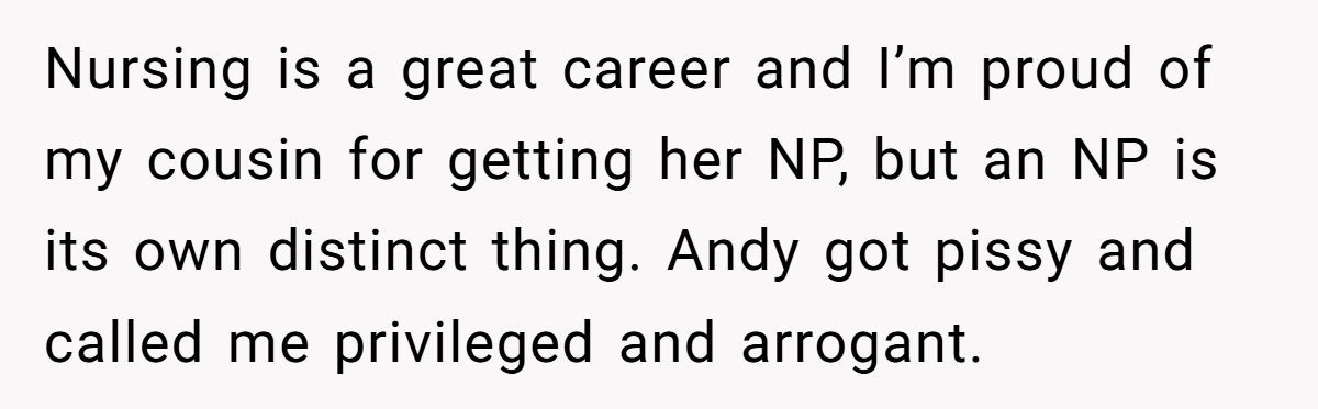 Do you think OP was defending the truth or swinging her credentials too hard? Is there ever a right time to draw that professional line? Sound off below—respectfully, of course.