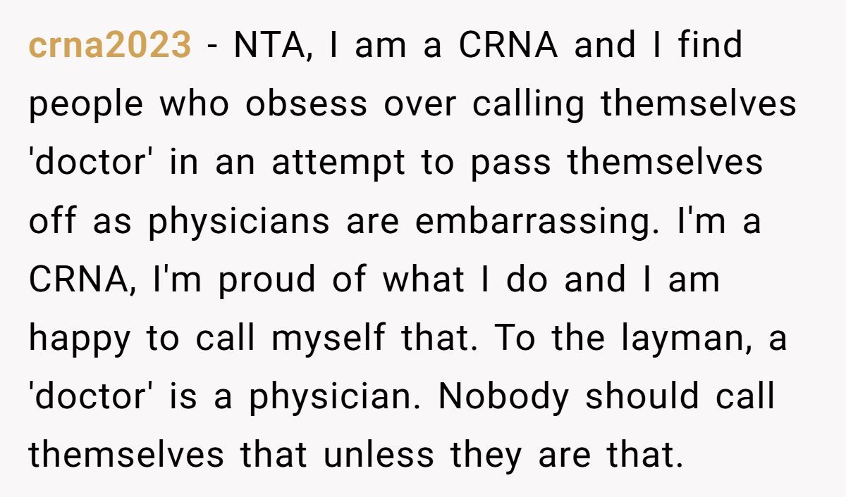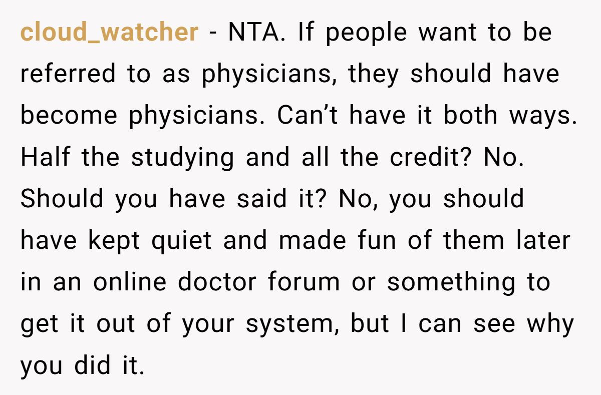 This wasn’t just about who gets to use the “Dr.” title. It was about pride, legacy, gender, and the deep desire to be seen as enough. Whether OP should’ve spoken up is debatable—but what’s clear is that medical titles still carry emotional weight in ways textbooks never could.