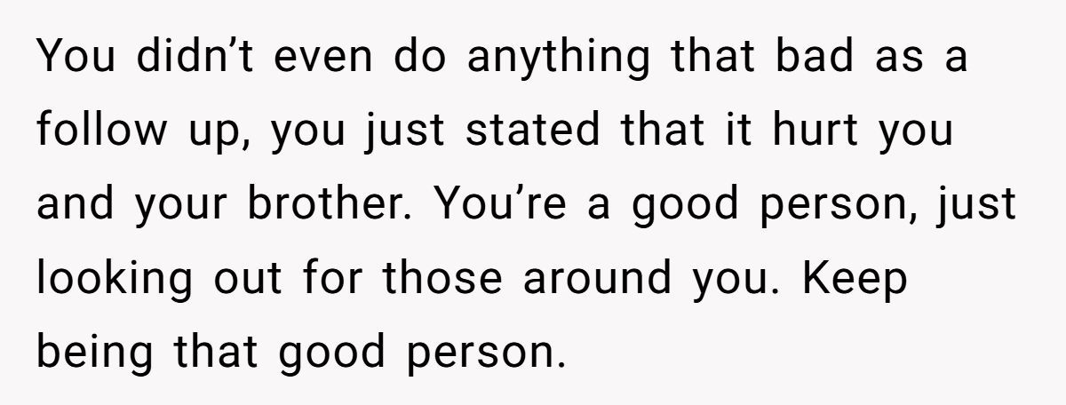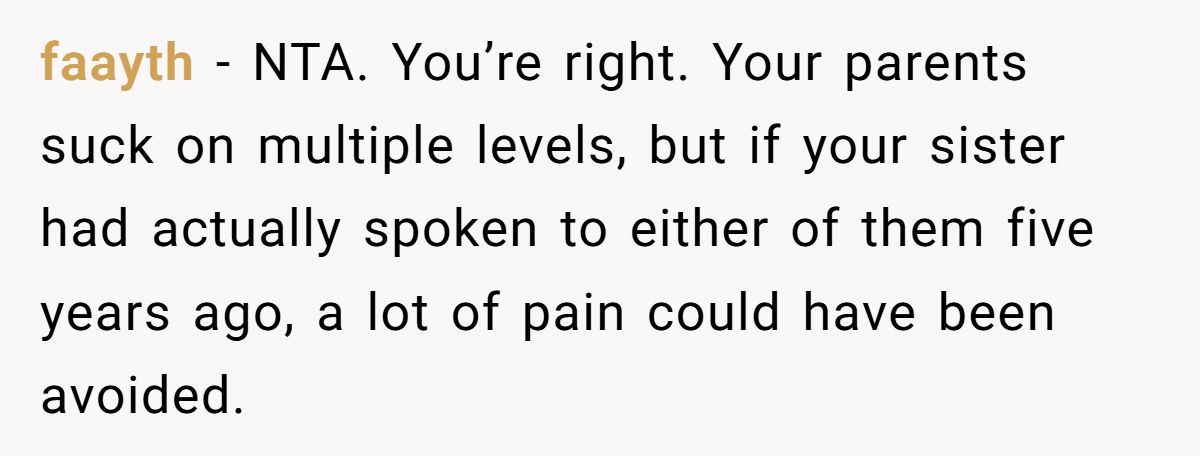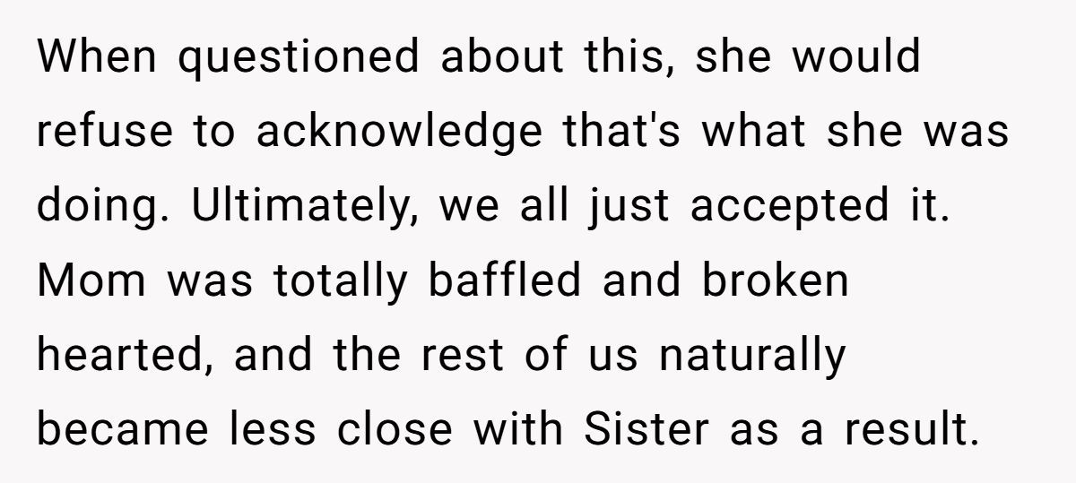 The Redditor’s decision to confront her sister may not have been soft, but it was honest—and long overdue. Emotional restraint isn’t always kindness. Sometimes, people need the truth said plainly to see the web they’ve spun.