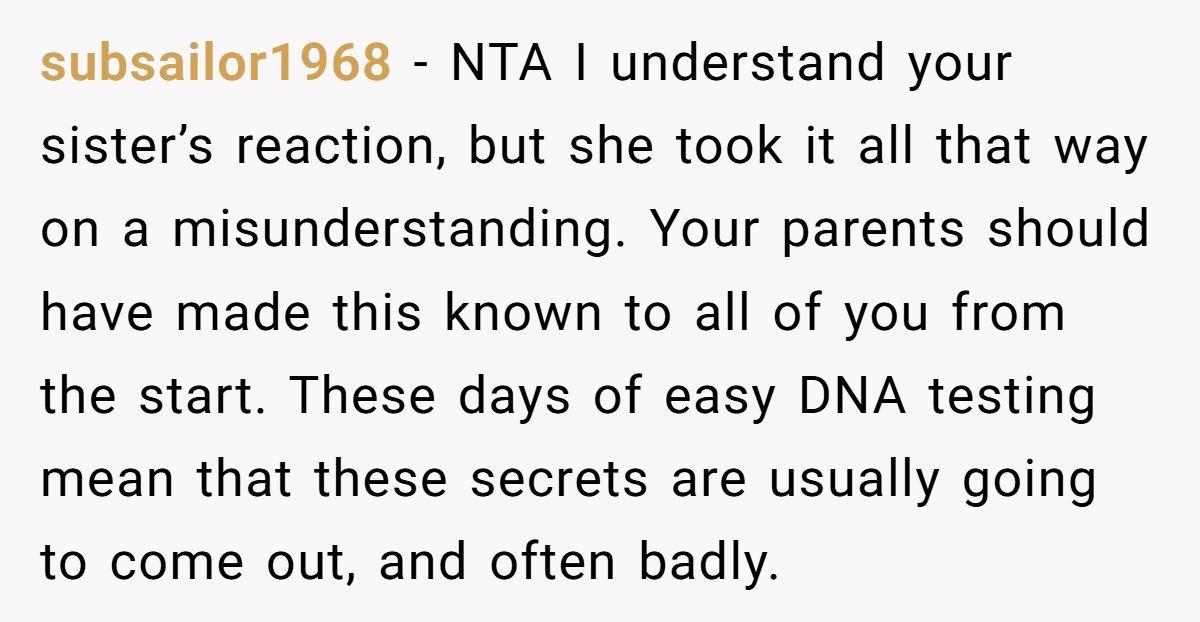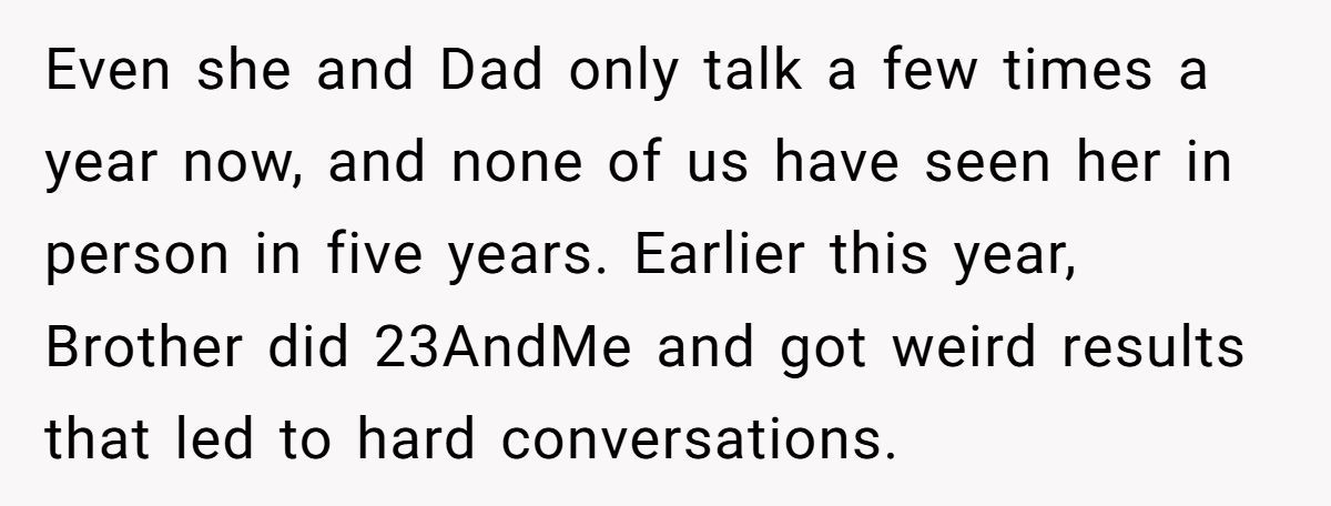 This Reddit tale didn’t end with DNA—it ended with a lesson: silence writes its own story, and not always the right one. While the sister reels from five years lost to a false belief, the family is still picking up the emotional pieces. Can a heartfelt conversation bridge years of miscommunication? Or do some wounds need more than truth to heal?