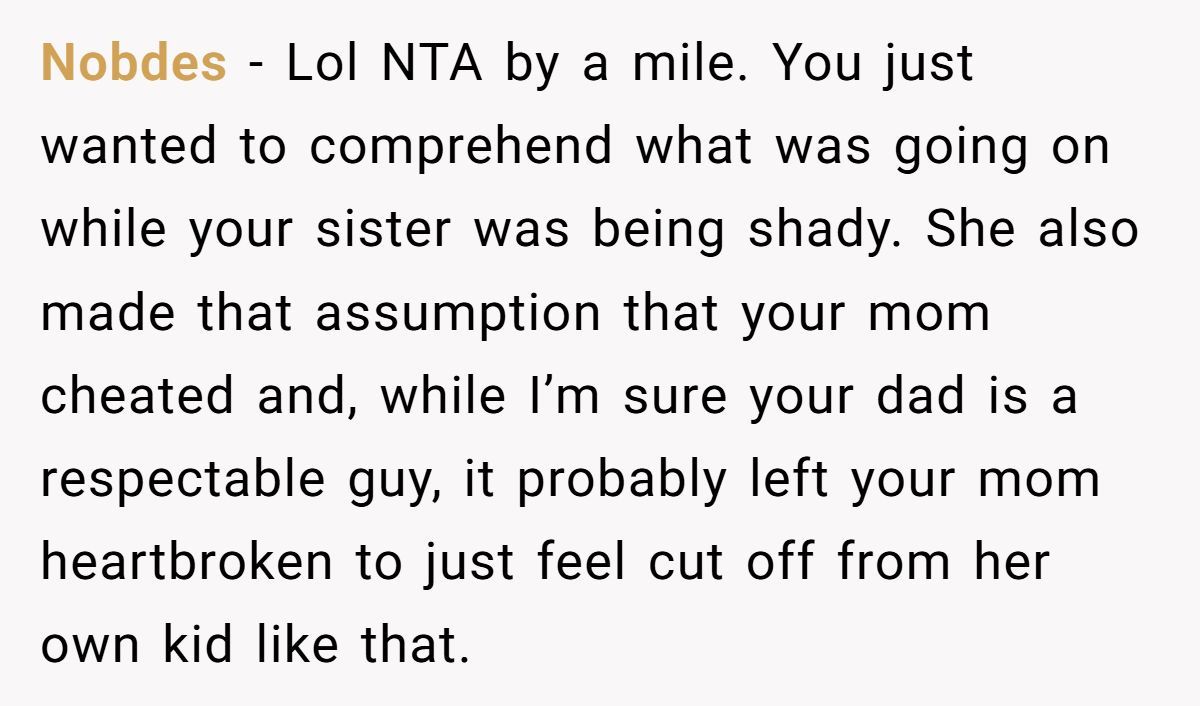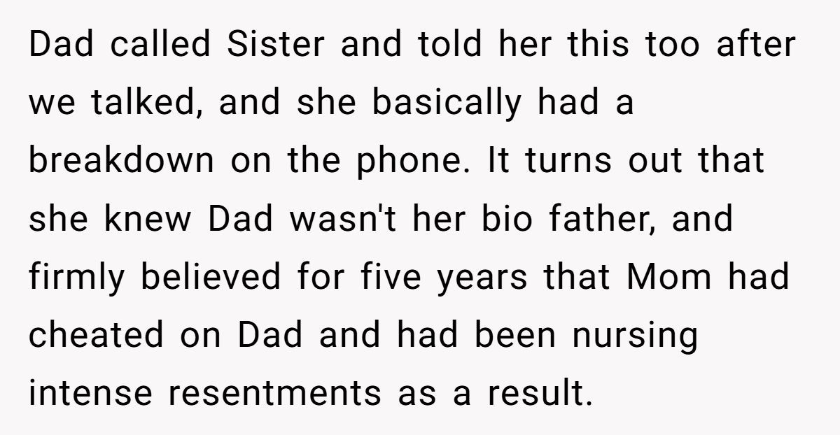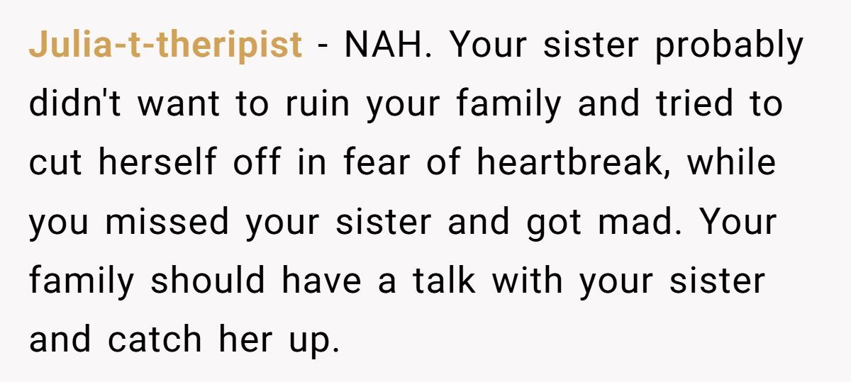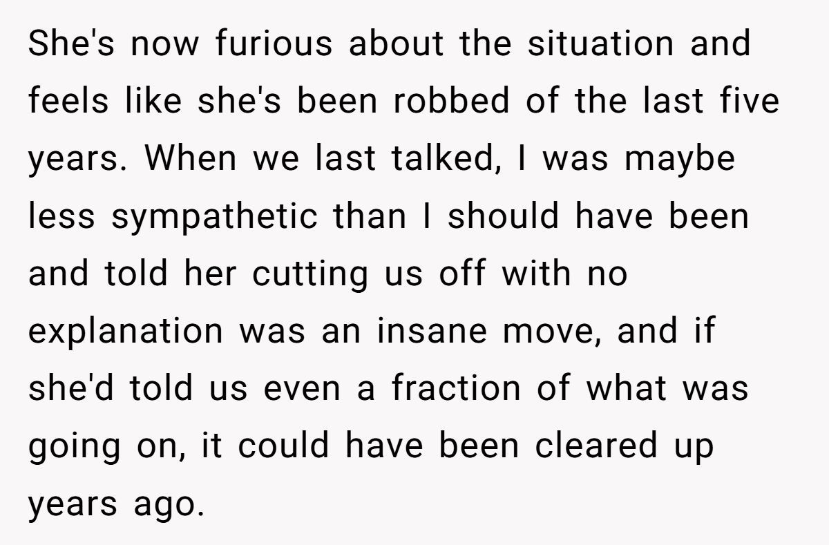 Now the truth is out, the sister is angry, and the Redditor wonders if calling her out was unfair… or long overdue. Want to know how a well-meaning secret turned into a half-decade of family estrangement? Let’s dive into the original post that lit up Reddit’s moral compass.