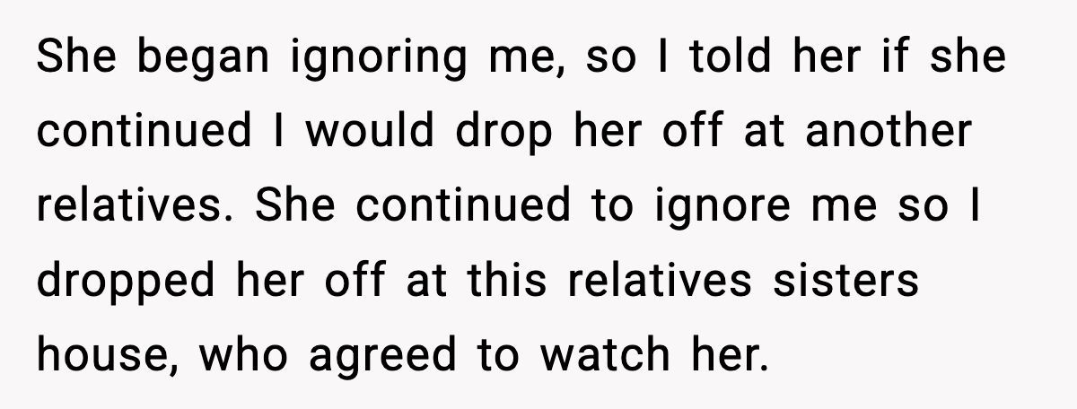 She could’ve given a final warning before leaving, but her boundary was clear. A written agreement for future family jobs might prevent repeat issues. Was her drop-off a bold stand, or should she have stayed to negotiate? Readers, what’s your take?