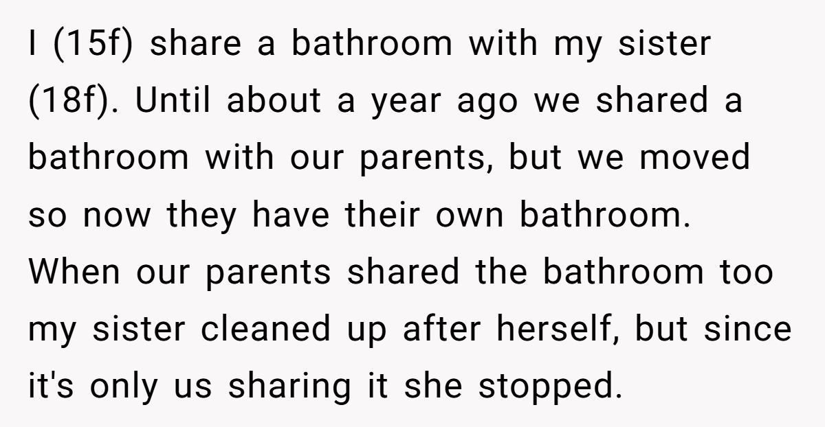 One teen’s frustration with her sister’s bathroom mess led to a bold move that sparked family drama and a spotless sink