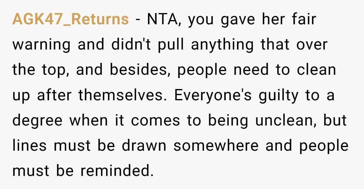 Was it fair to follow through on the warning? Yes. Was it too personal to involve someone external? Arguably. Should parents have stepped in sooner? Definitely. How would you approach someone who refuses basic cleanliness? Share your thoughts below!