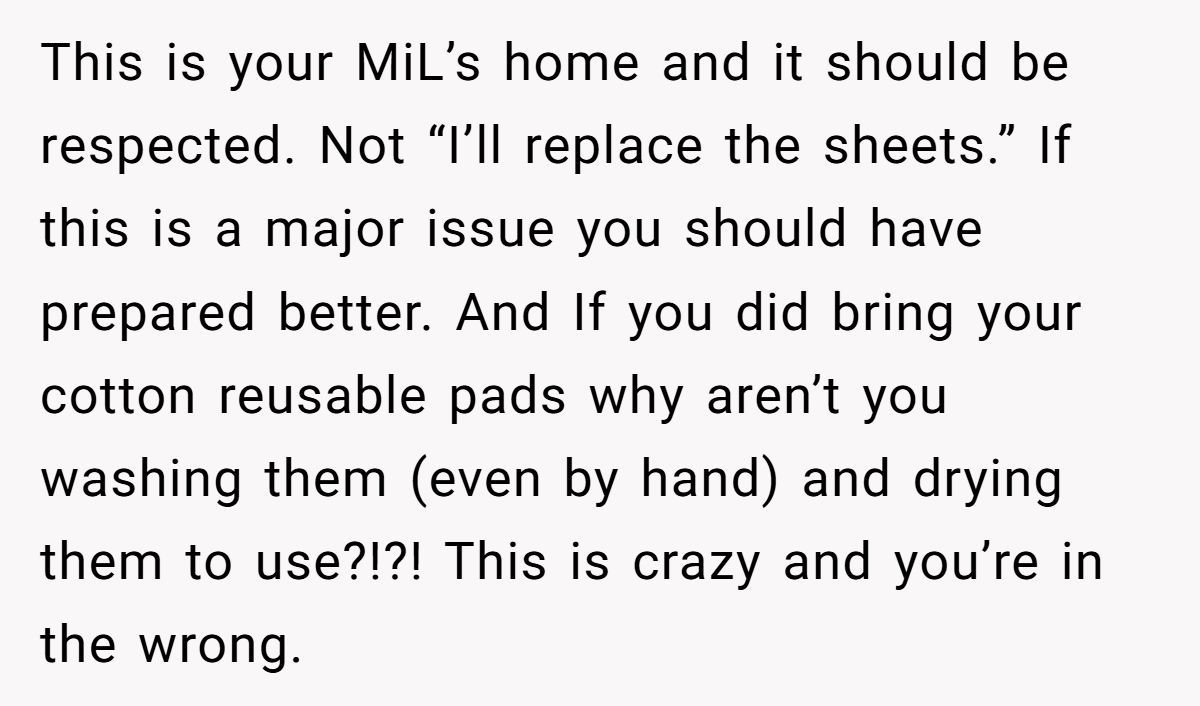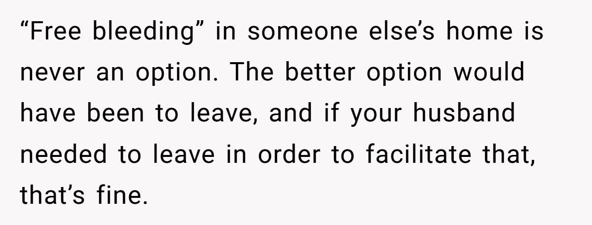 Ultimately, this isn’t about period stigma. It’s about how we balance bodily autonomy with shared responsibility. Health comes first—but not at the cost of making others deeply uncomfortable in their own home. It’s possible to care for yourself and respect your host’s space.