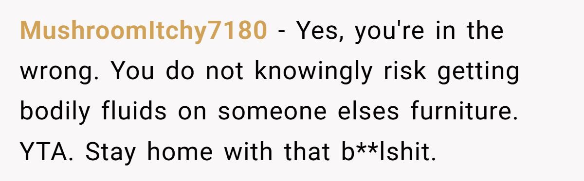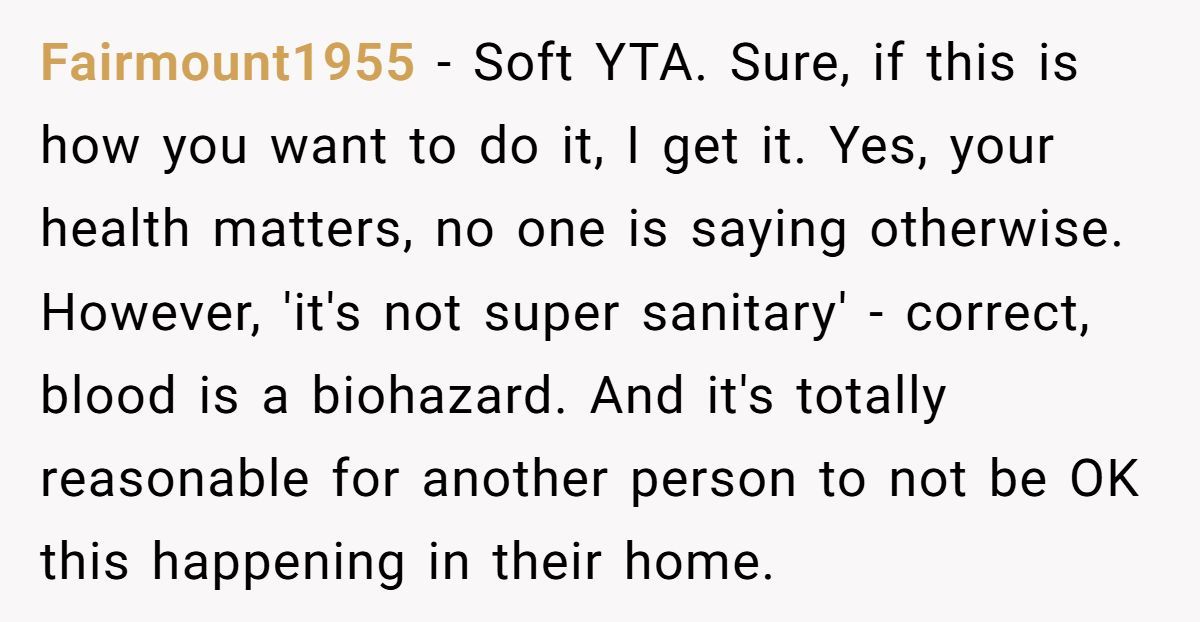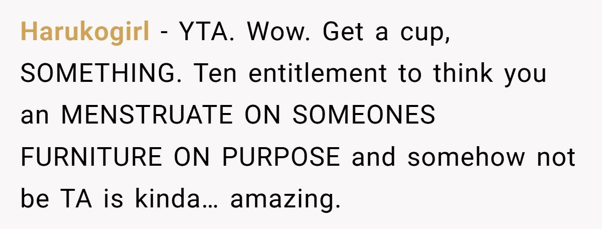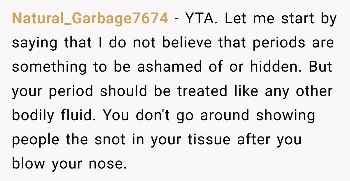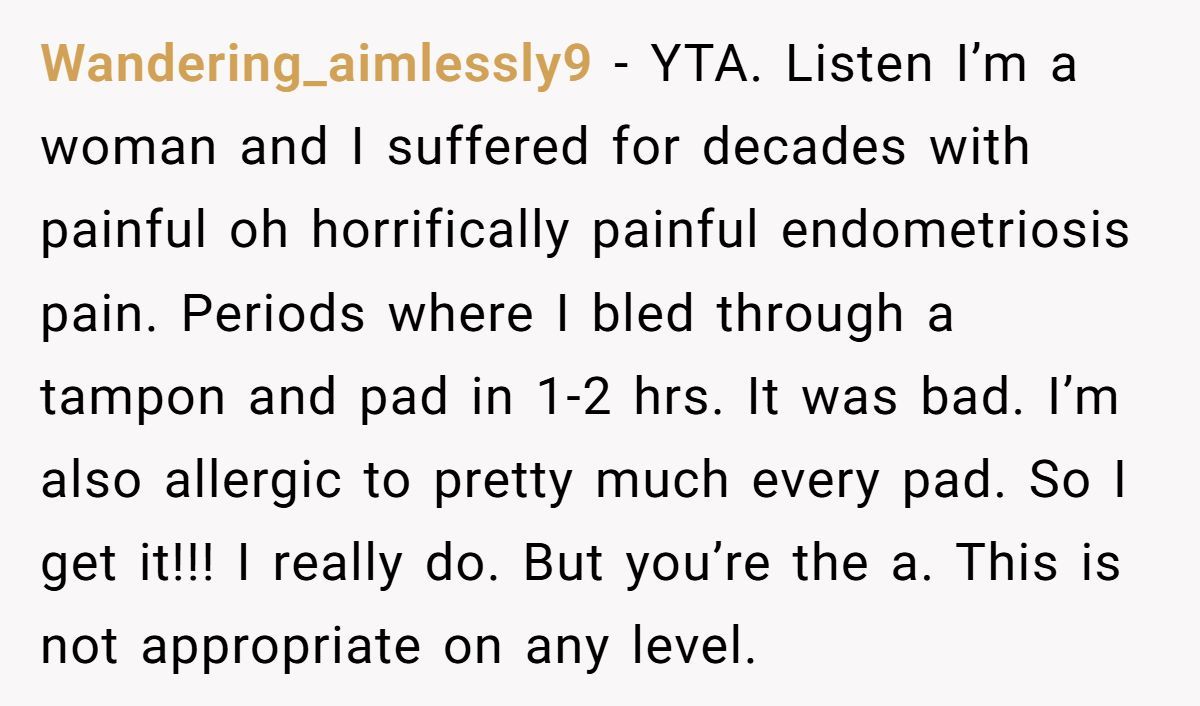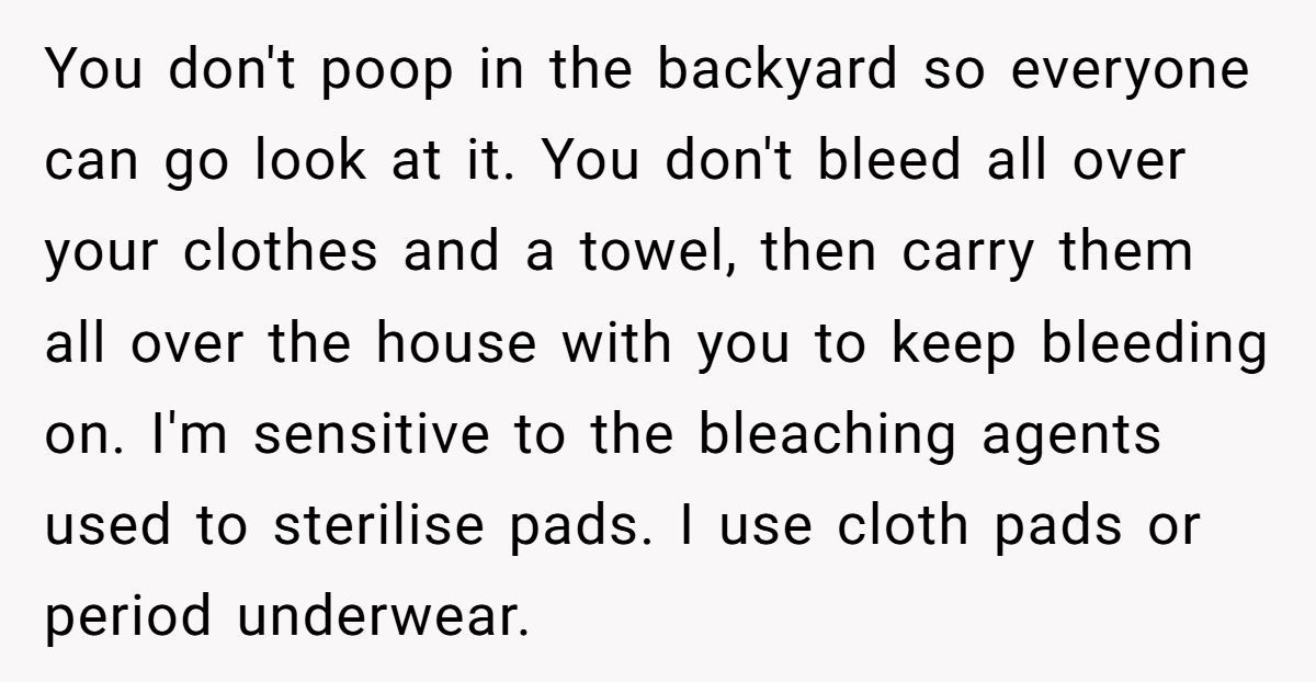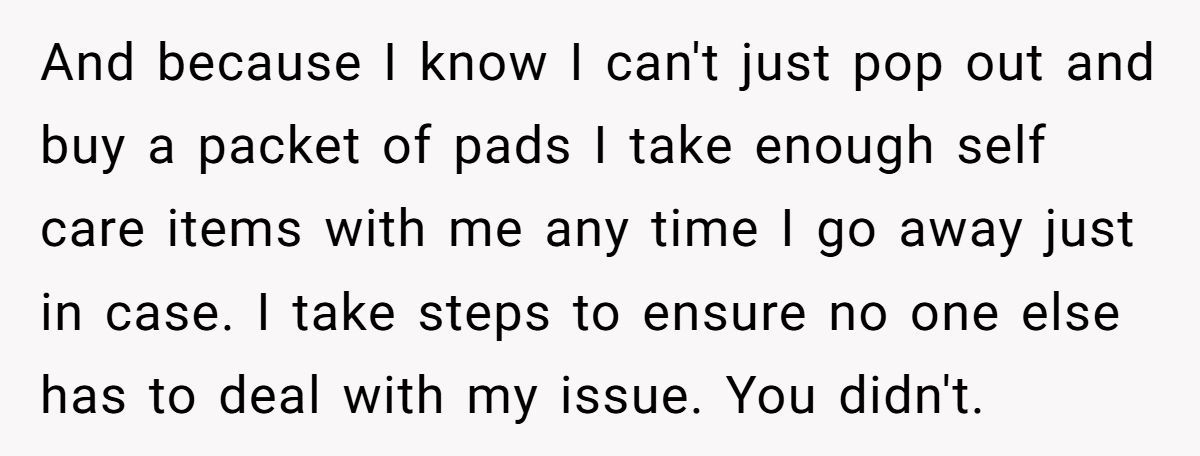 This Reddit drama sparked debate far beyond menstruation—it unearthed a deeper question: when does self-care become selfish? The poster didn’t mean harm, but good intentions don’t always clean up the mess.