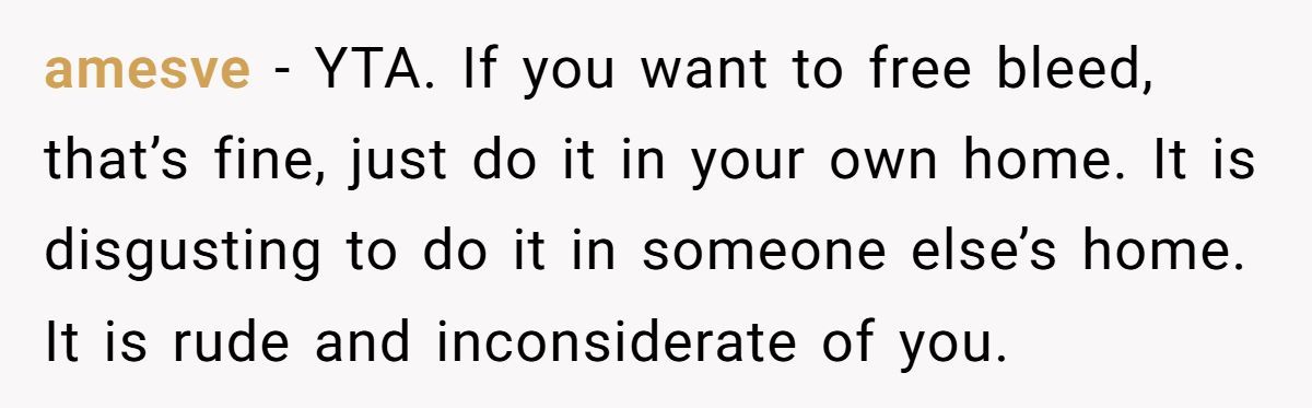 These commenters claimed free bleeding in someone’s home is unacceptable, advising the Redditor to find alternatives