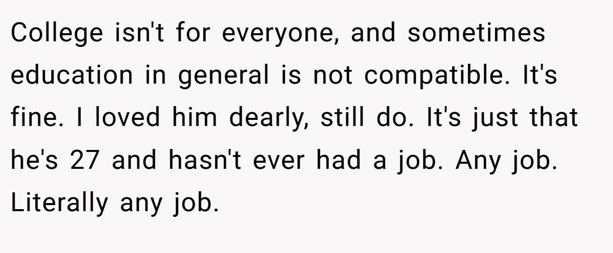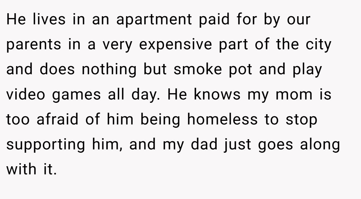 Family enabling can trap loved ones in dependency. Mike Loverde, Clinical Director & Founder, Family First Intervention, a family dynamics expert, notes in a 2019 Family First Intervention article that enabling prevents growth by shielding adults from consequences. The OP’s parents, by funding her brother’s rent and lifestyle, have stunted his independence, leaving him jobless at 27. Her granddad’s will, favoring her for her care and barring her brother for theft, reflects deliberate intent to reward responsibility.