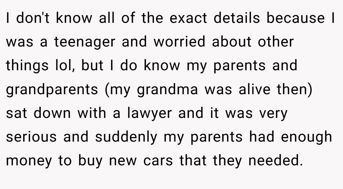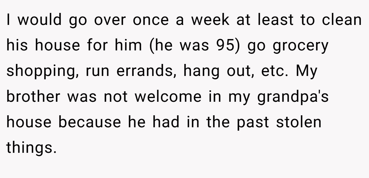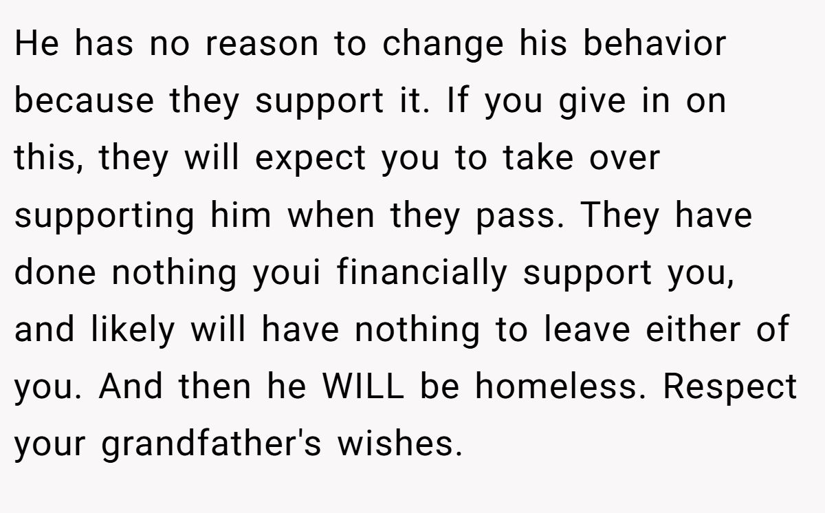 At the heart of this story is a question of fairness—not the kind measured in dollars, but in effort, care, and consequences. Her brother made choices. So did her grandfather. And now she’s being asked to undo both.