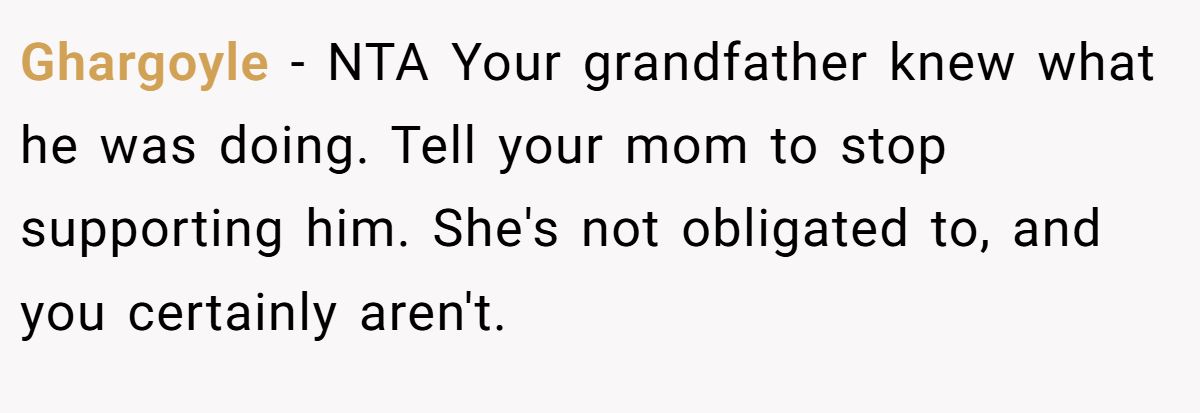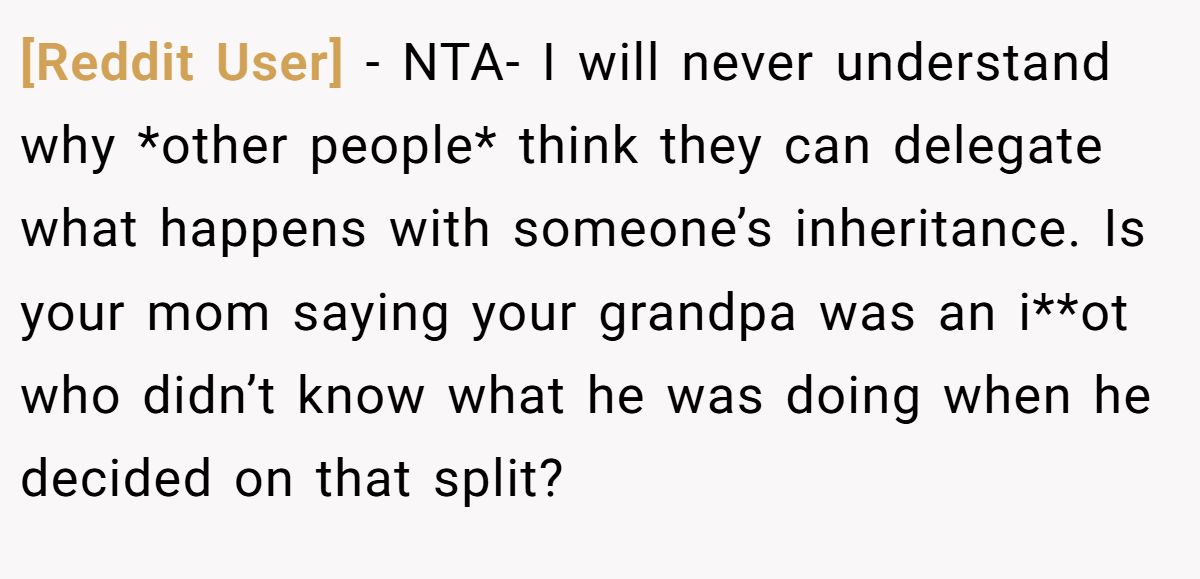 A Reddit user questioned her mom’s audacity to challenge the granddad’s clear intent.