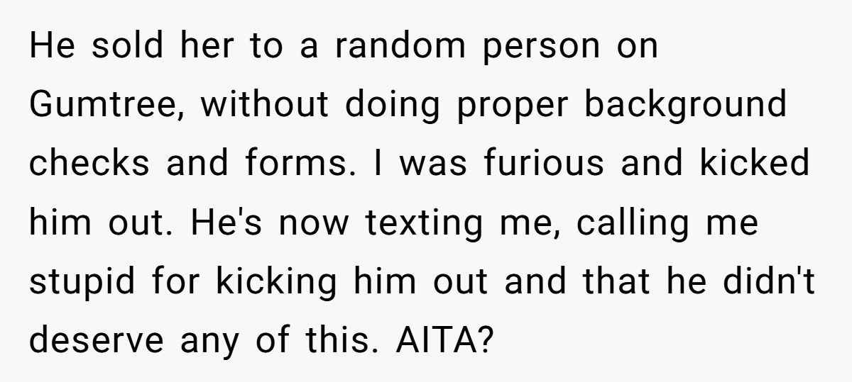 What would you do if your partner sold your pet behind your back? Could you ever forgive that kind of betrayal, or is this a relationship-ending red flag? Let us know where you draw the line.