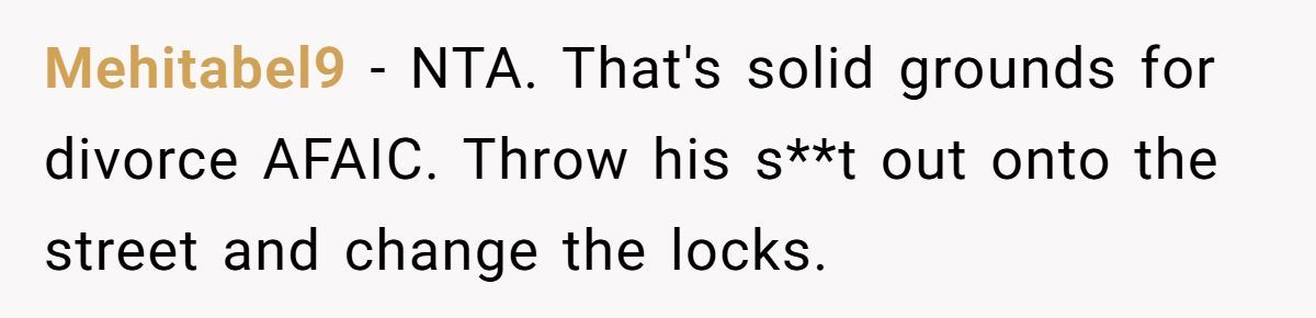 Commenters supported her divorce, calling the sale a dealbreaker and urging her to never let him back into her life