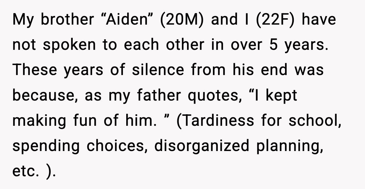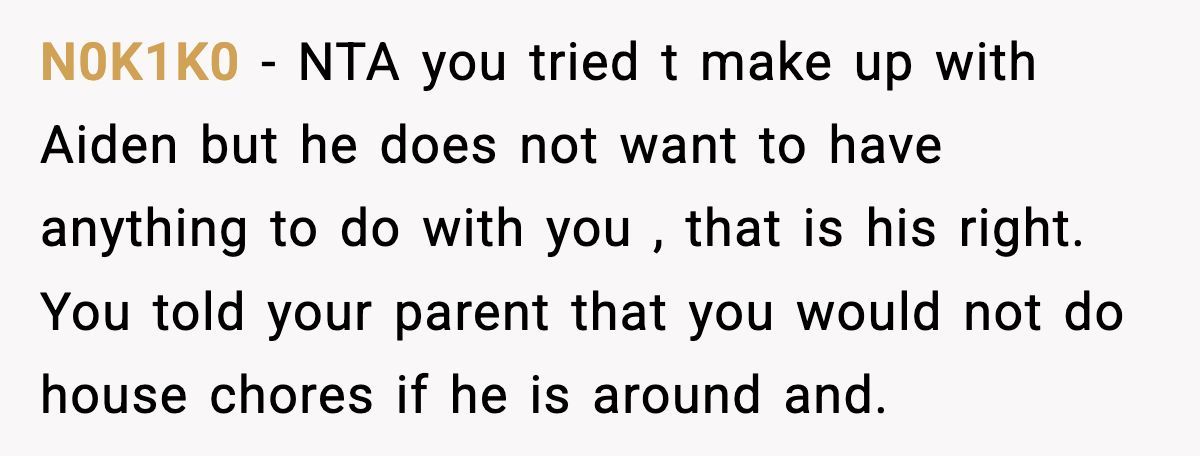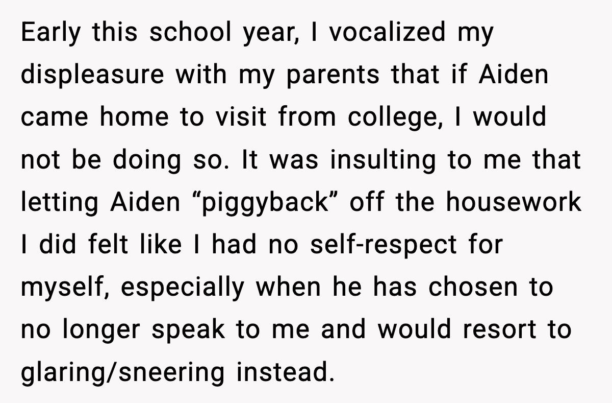 A Redditor walked into a family fiasco that would make most of us rethink visiting home altogether. After years of being estranged from her brother Aiden, this 22-year-old woman finally set a clear boundary: if he’s visiting, she’s not. Or at the very least, she won’t be playing housemaid while he ignores her existence.