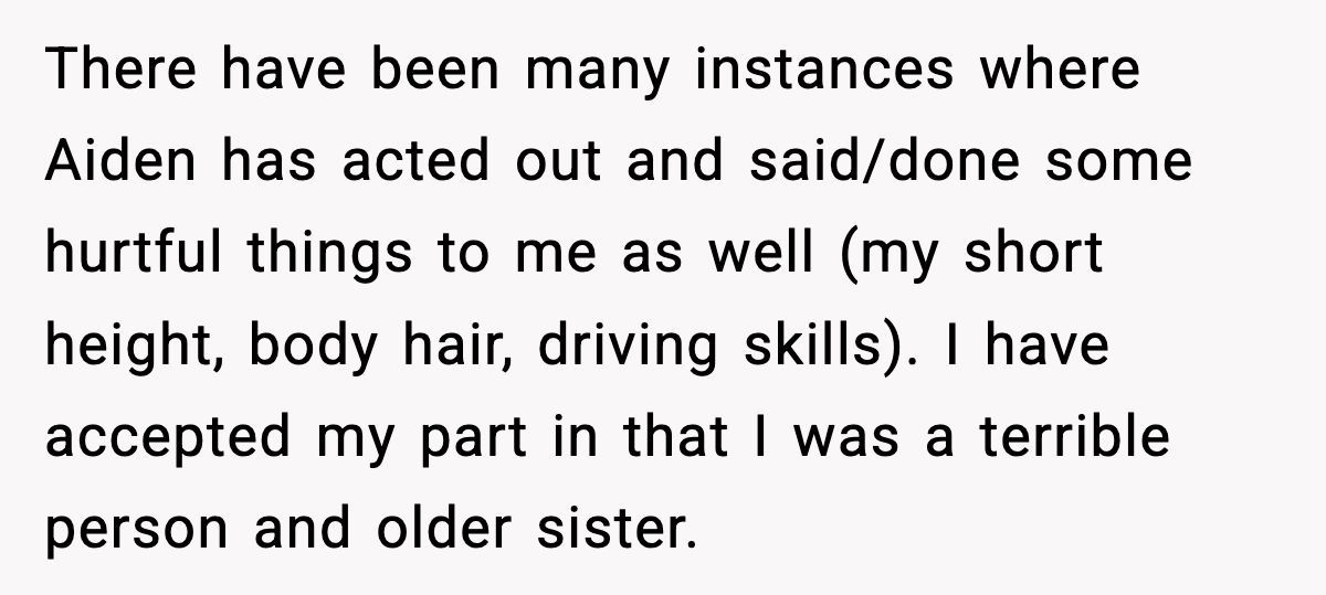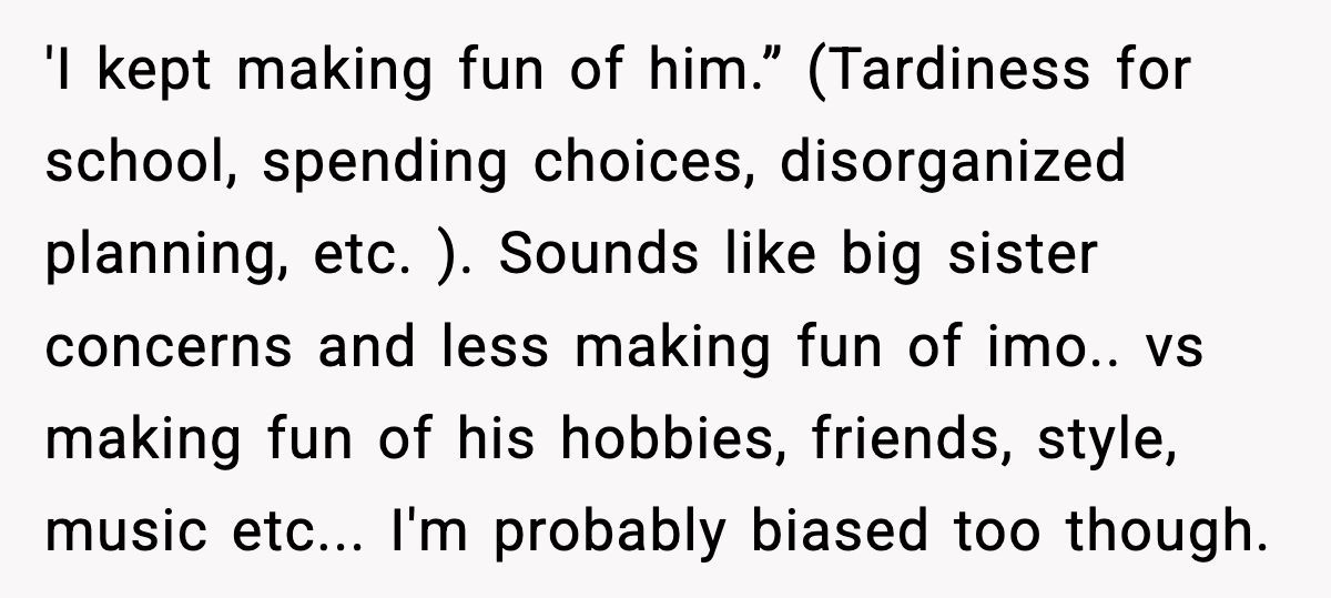 One Redditor saw her concerns as typical big-sister stuff, not bullying.