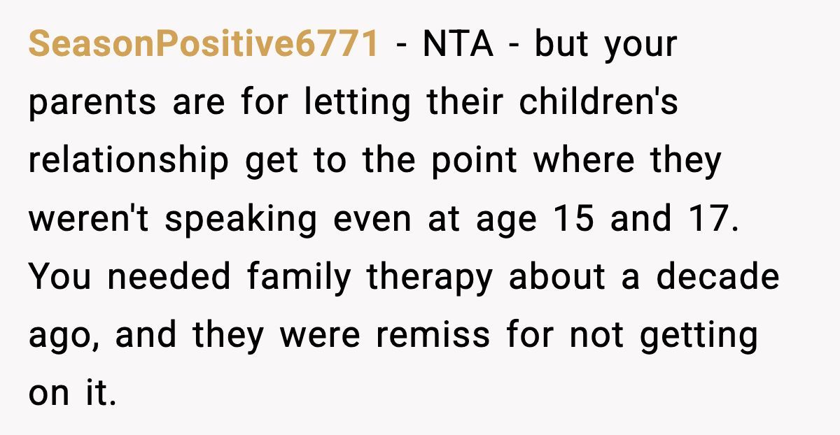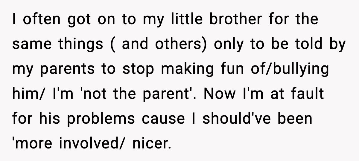 One user slammed the parents for enabling the bad sibling dynamic for years.