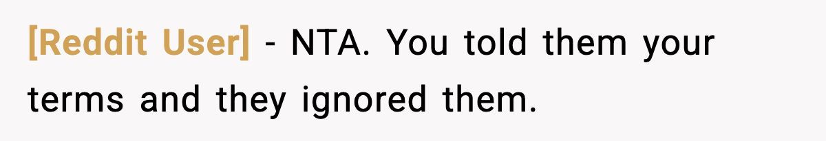 Netizens weren’t shy about calling out the family’s behavior—and many felt the Redditor was well within her rights